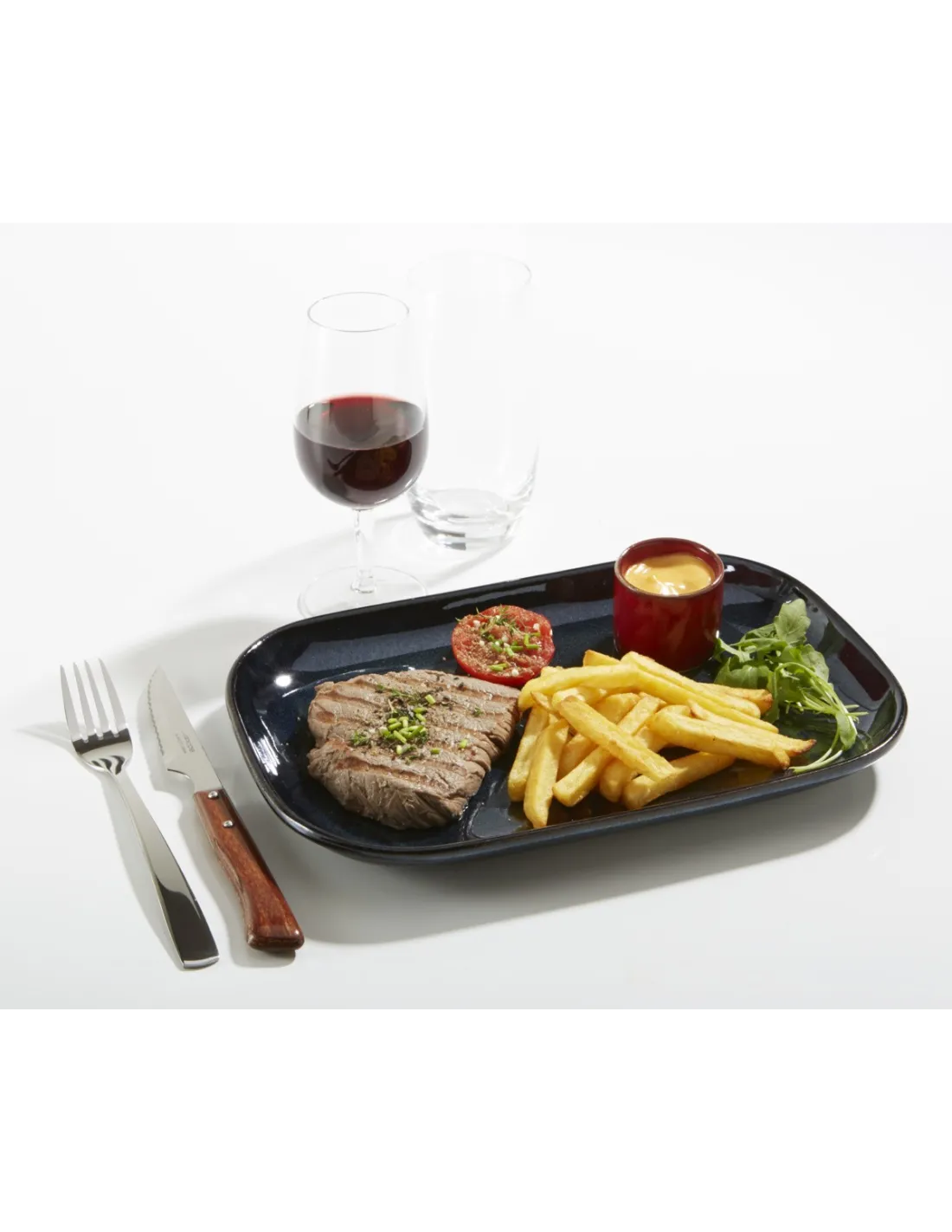 Rectangular glazed red gres steak plate, measuring 29x19.5 cm. Made of gres, it combines durability and attractive design.