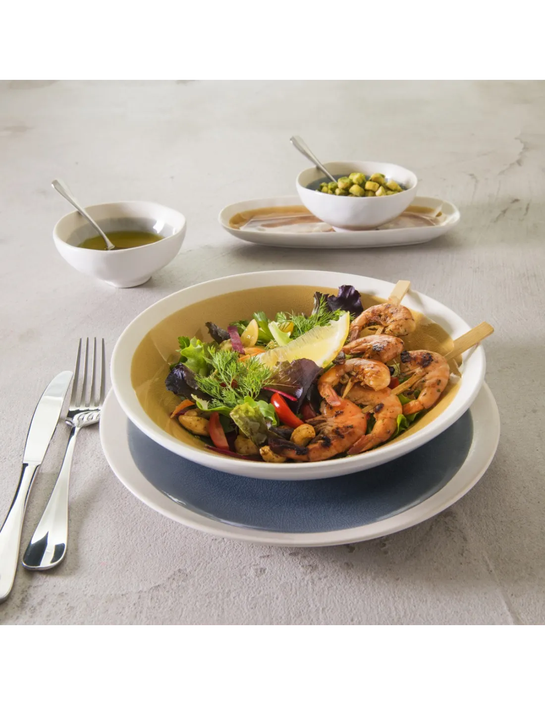 Extra round deep glazed stoneware plate Ø 24 cm, with artisan design and crackled glaze. Sturdy, easy to clean, and stackable, combines authenticity and modernity, ideal for catering establishments.