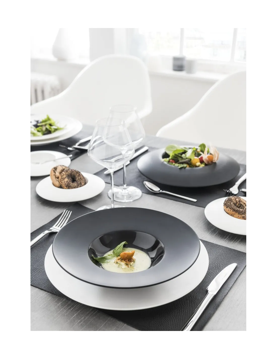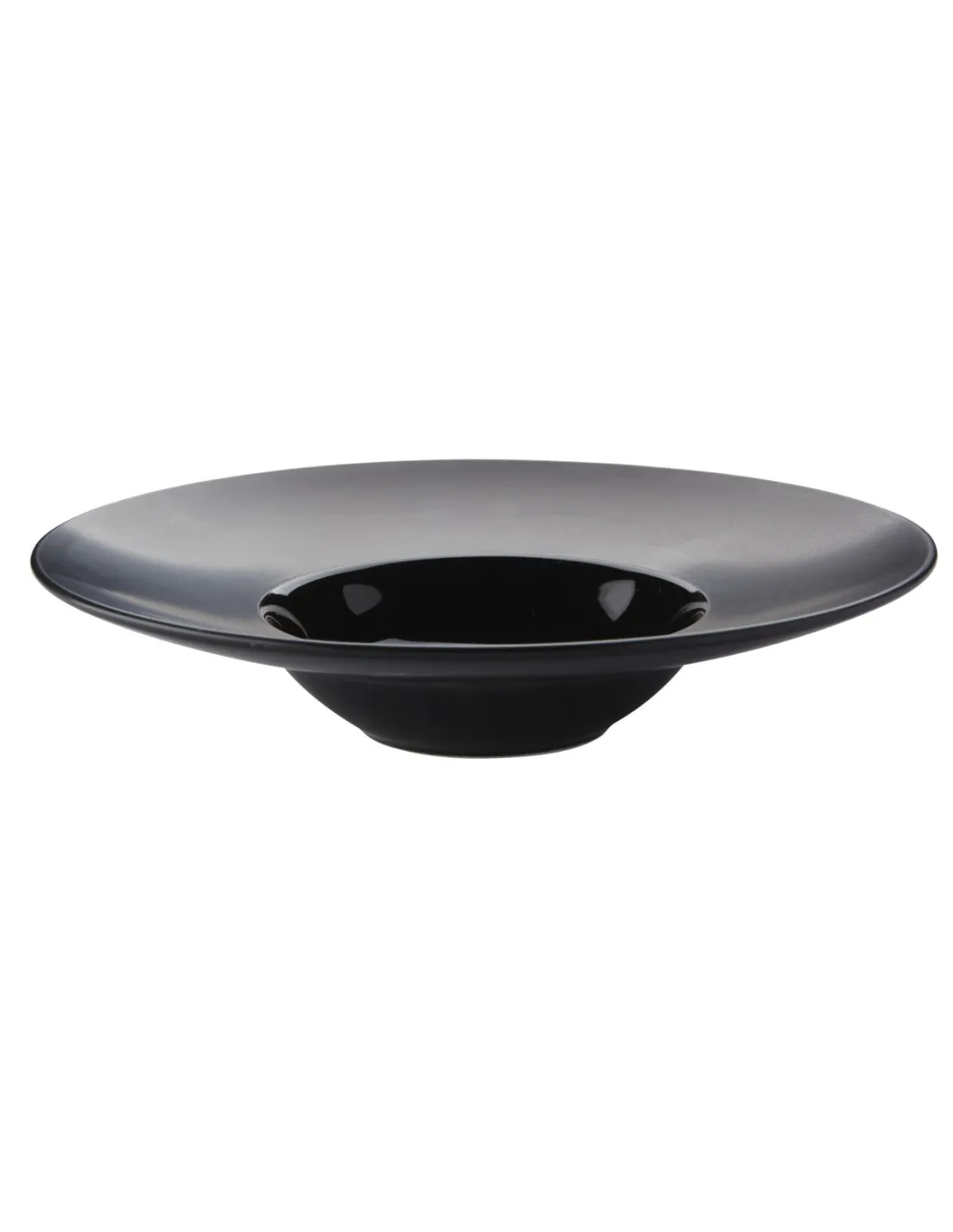 Extra deep round black glazed stoneware plate Ø 21 cm, with a matte finish on the rim and a glossy finish on the bowl. Sturdy and resistant to thermal shocks, it facilitates maintenance and is...