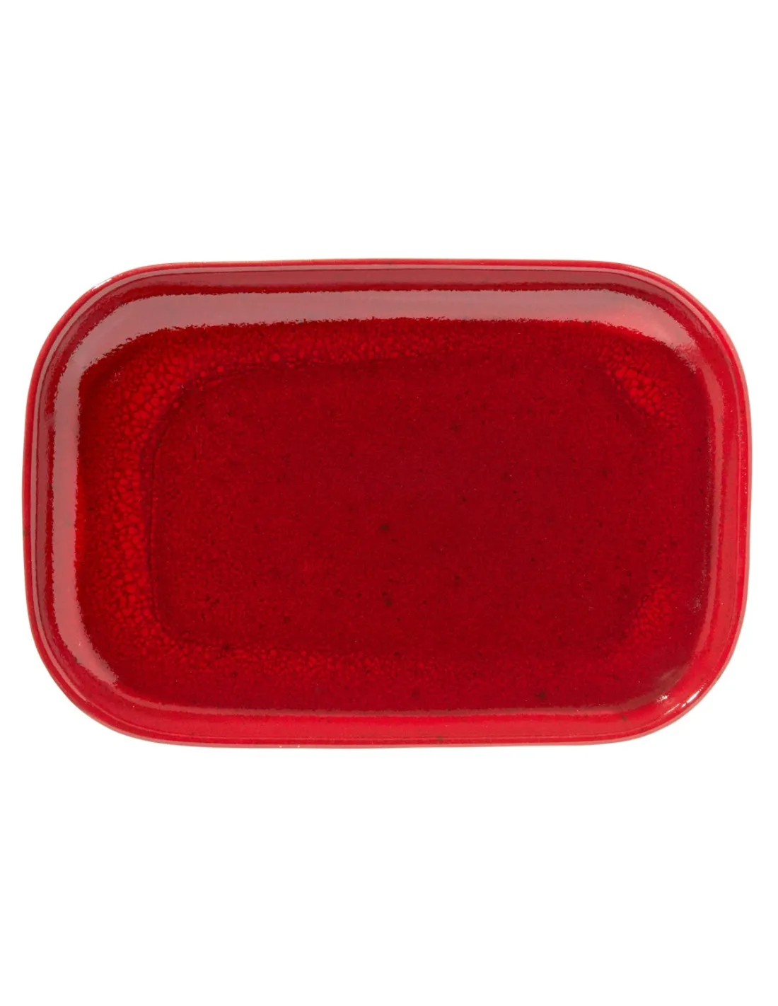 Rectangular glazed stoneware steak plate in red, measuring 34.5 x 23.5 cm. Made of stoneware, it combines durability and design.