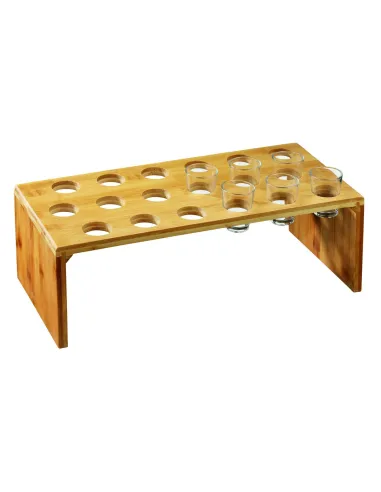 The tall bamboo display stand 46 cm x 20 cm x 14 cm Pro.mundi is designed for catering professionals. It can hold up to 18 pine cones or tasting cups, optimizing space at buffets and events. Easy to clean, it combines robustness, aesthetics, and practicality for an elegant and functional presentation.
