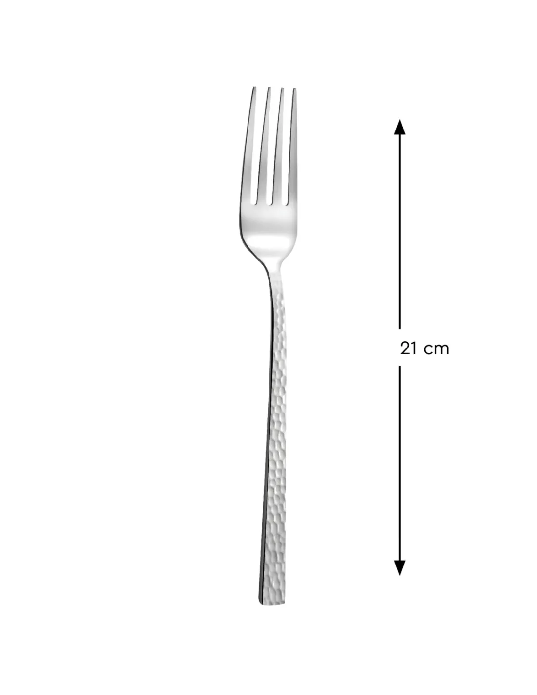 The 21 cm Alma 18/0 stainless steel table fork stands out for its hammered finish that hides fingerprints. Made of 18/0 stainless steel, it is sturdy, corrosion-resistant, and dishwasher safe,...