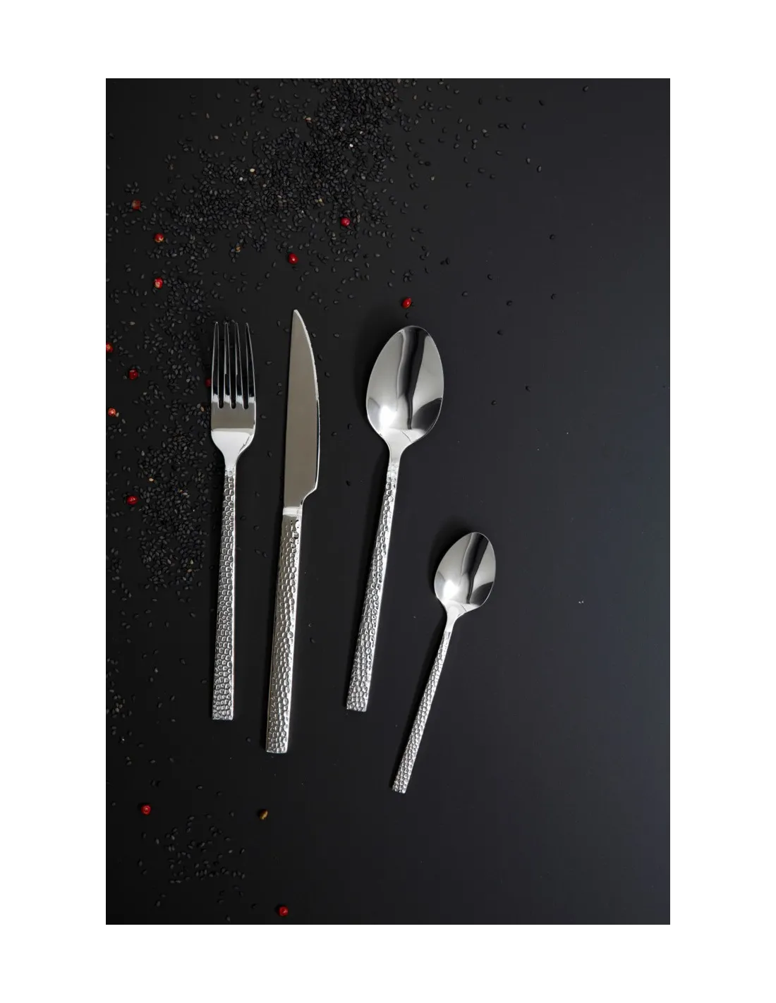 Pro.mundi offers elegant and functional cutlery for professionals in the catering industry. The Alma fork, made of 18/0 stainless steel and measuring 21 cm, stands out for its hammered finish that disguises fingerprints. Sturdy, corrosion-resistant, and dishwasher-safe, it combines refined design, comfort, and durability for intensive use.