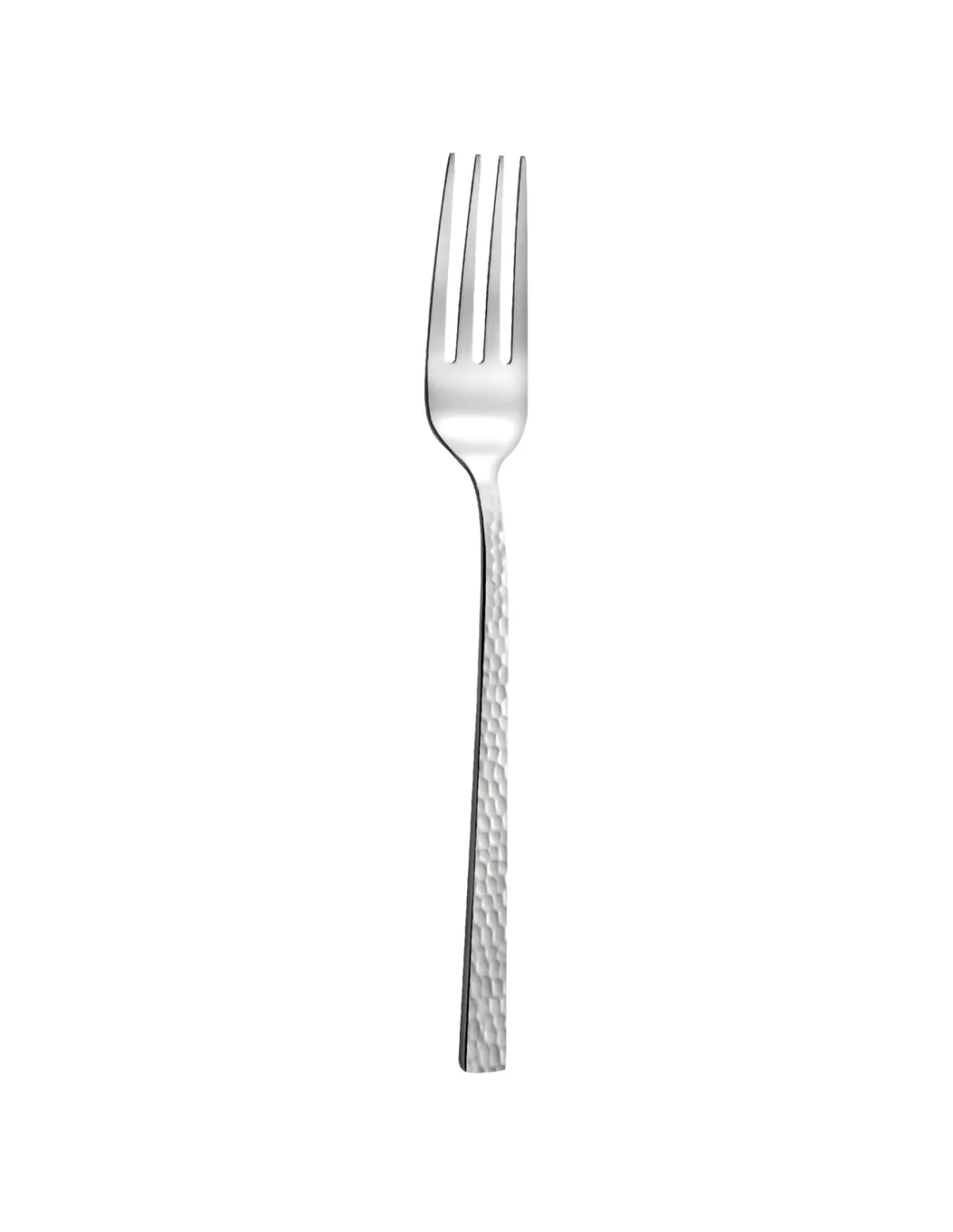 18/0 stainless steel dessert fork, with a length of 18.1 cm. Designed for professional use in catering, it features a hammered handle that provides ergonomics and aesthetics. Its...