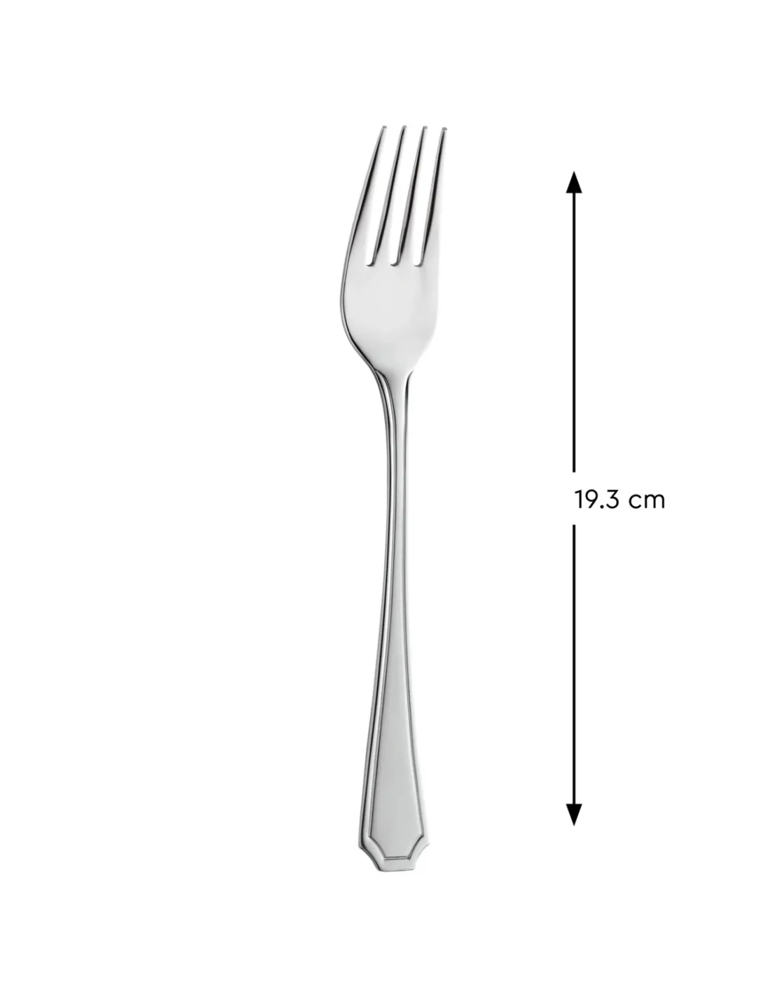 18/0 stainless steel table fork, with a length of 19.3 cm. Its elegant design and angular handle provide a comfortable grip. Sturdy, corrosion-resistant, and easy to maintain, it combines quality...