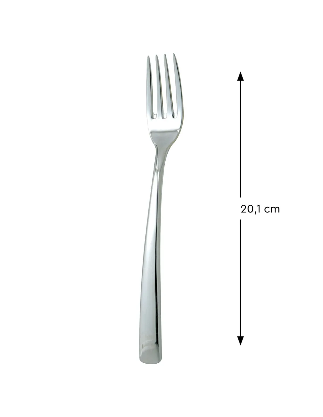 Stainless steel 18/0 table fork, with a length of 20.1 cm, designed for professional use in the hospitality industry. Its durability and corrosion resistance ensure easy maintenance. It features a...