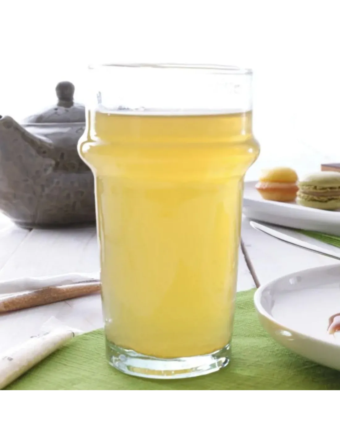 Pro.mundi offers the hand-blown recycled glass beldi glass, which combines quality, durability, and timeless design. Locally made, it can withstand heavy use in the hospitality industry while promoting the circular economy. This unique glass, with slight color variations, adds authenticity and elegance to every service.