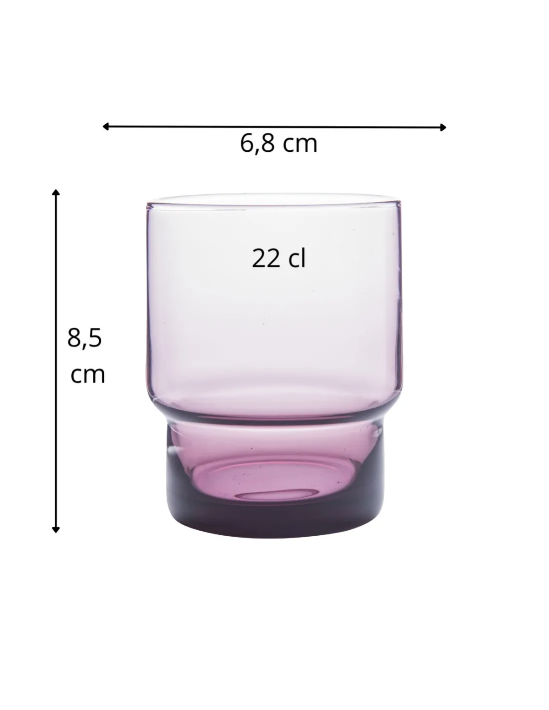 Low violet glass tumbler, 22 cl, designed for catering professionals. Its Nordic-style parma color, robustness, thermal shock resistance, and easy cleaning make it functional. Stackable, optimizes...