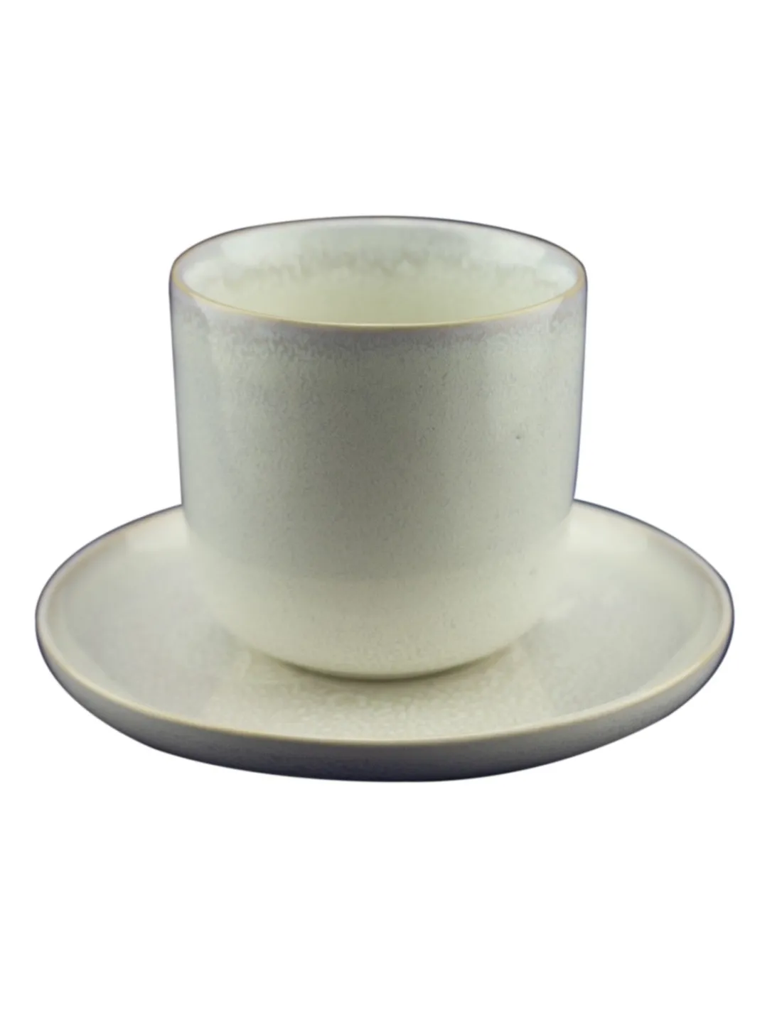 The round pinkish beige glazed stoneware glass has a capacity of 9 cl and a diameter of 6.2 cm. Made of durable stoneware, it is resistant to heavy use and easy to clean, making it suitable for...