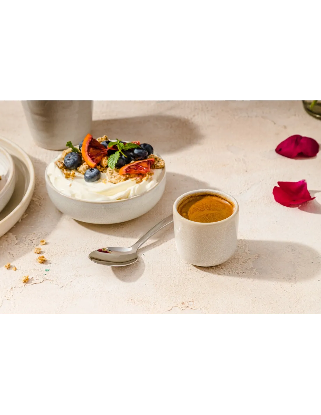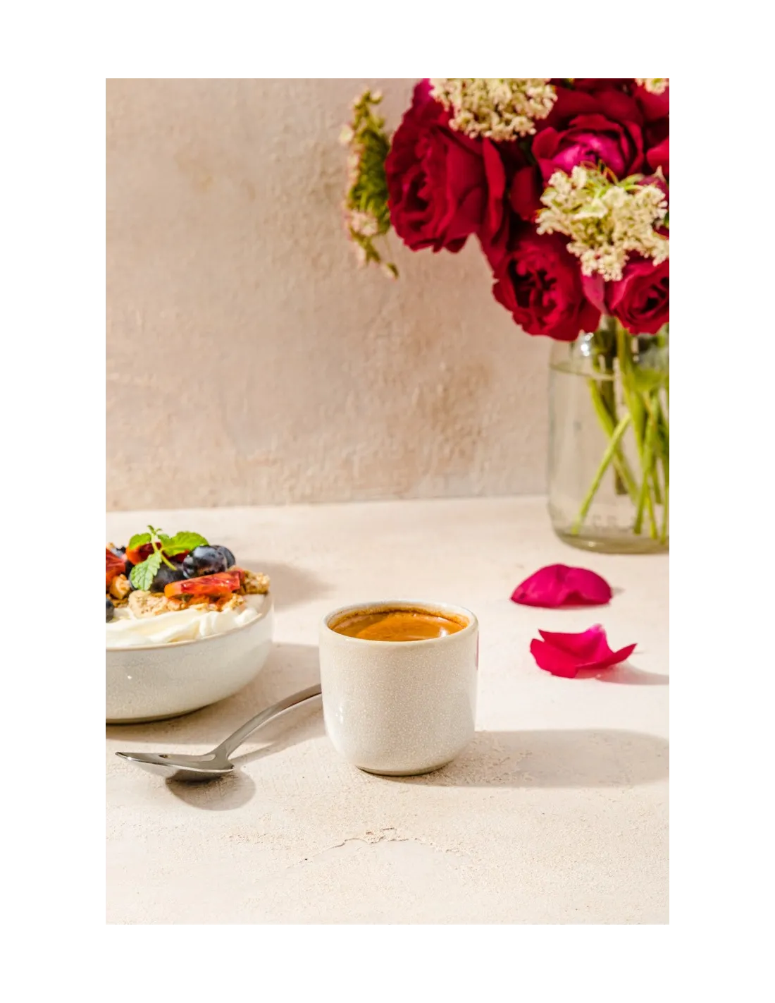 The round pink beige glazed stoneware 9 cl Ø 6.2 cm pearl Pro.mundi glass is a durable stoneware container, resistant to heavy use and easy to clean, ideal for the hospitality industry. Its pink beige tone and glossy finish provide a minimalist, elegant, and timeless aesthetic, suitable for various establishments. Its capacity allows for serving espressos or condiments, in harmony with the Pearl saucer. Its unalterable color ensures long-lasting shine.