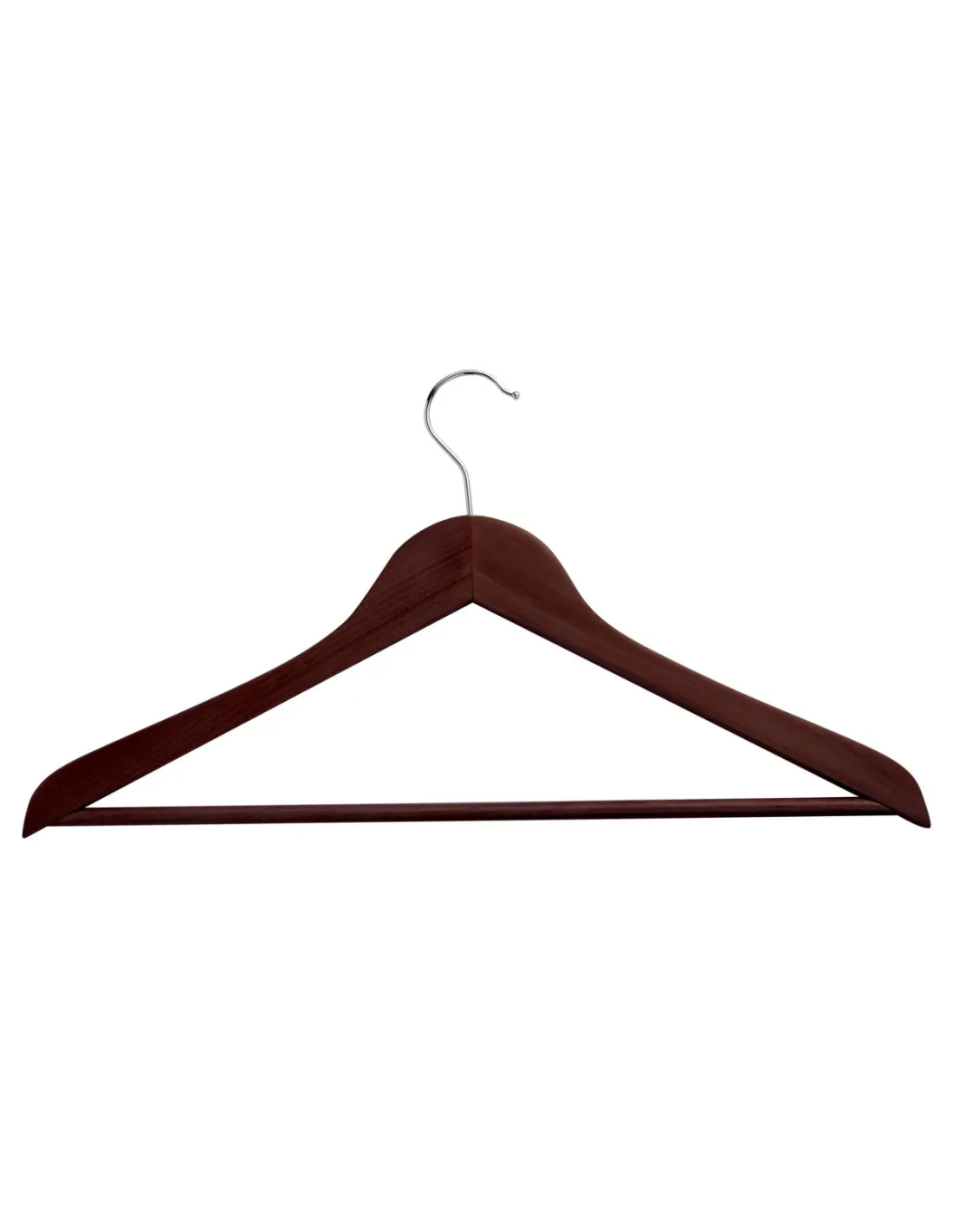 Made of lotus wood with a wenge color finish. Dimensions of 44.5 cm x 21 cm. Includes a bar for hanging pants.
