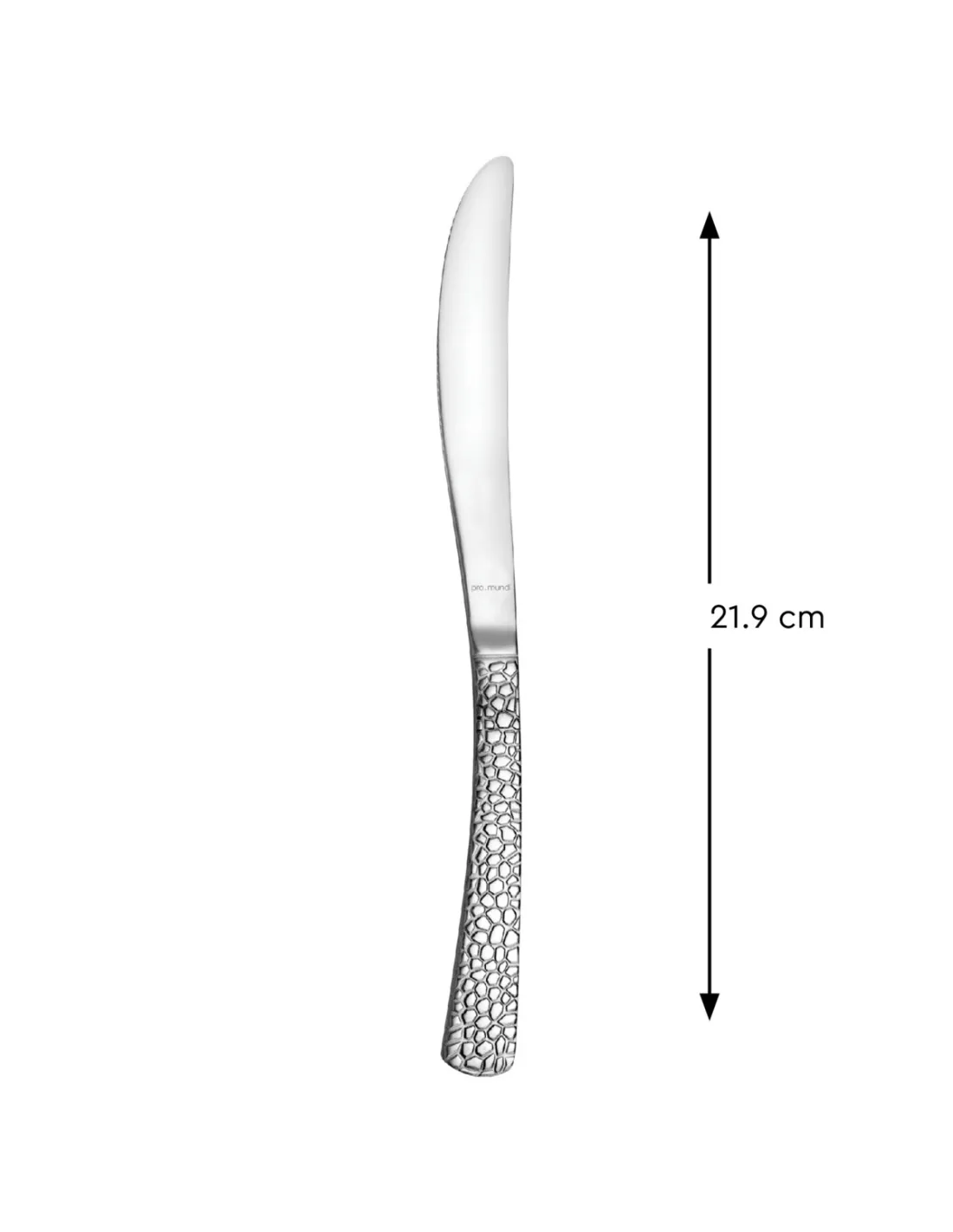 21.9 cm serrated monobloc table knife, made of 13Cr stainless steel, known for its corrosion resistance and easy maintenance. Its elegant design with a hammered handle combines robustness and...