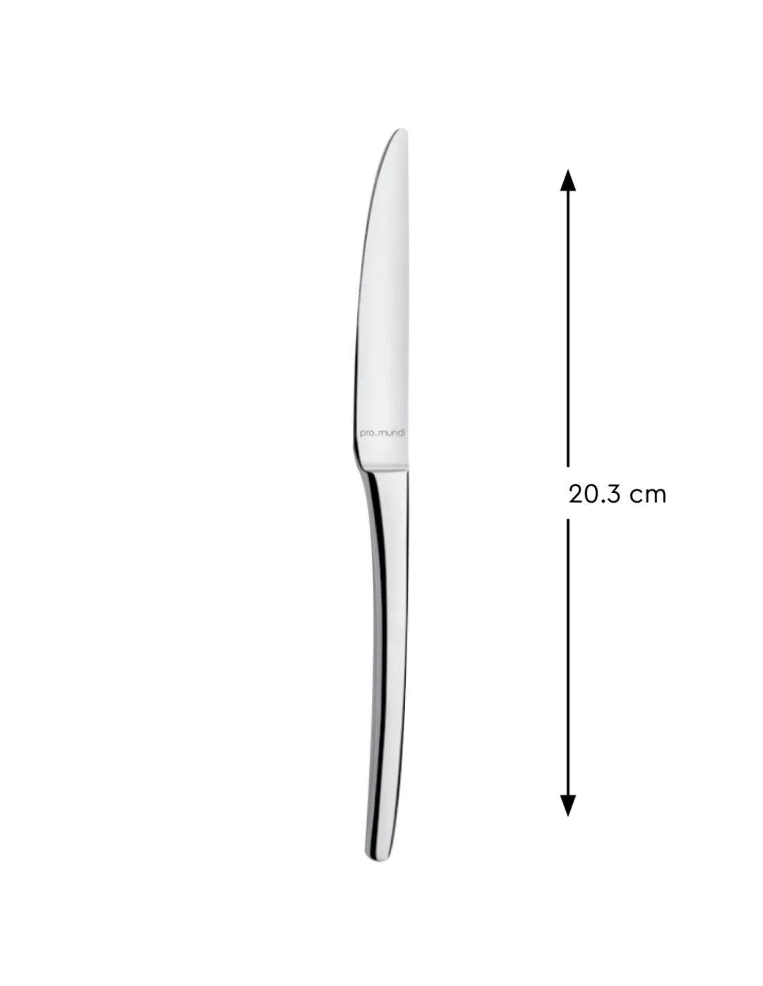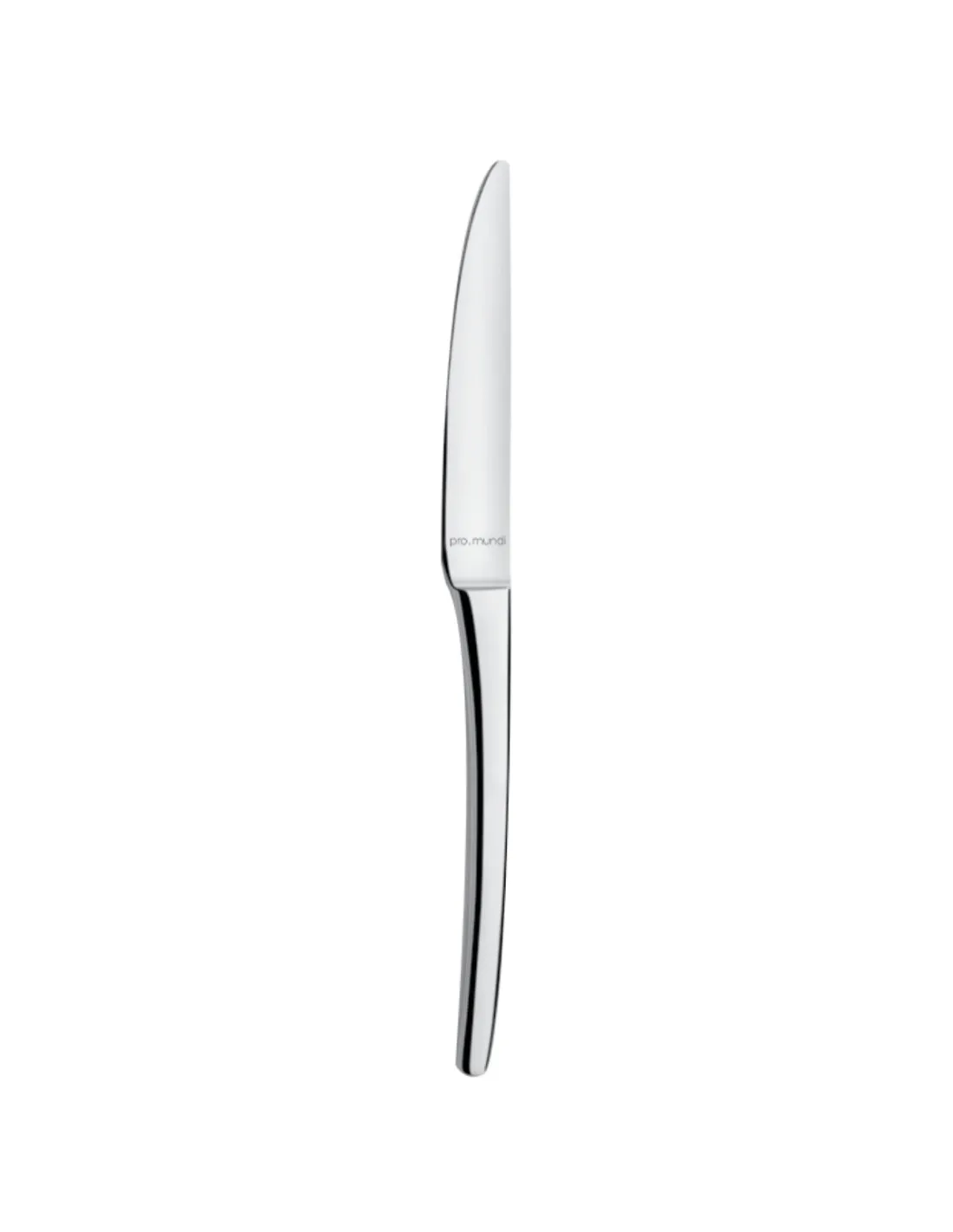 The brand Pro.mundi offers a 20.3 cm serrated monobloc dessert knife that combines elegance and functionality. Made of durable 18/10 stainless steel and 13Cr, it is resistant to corrosion and easy to maintain. Its comfortable grip and hygienic design make it an ideal choice for food service professionals.