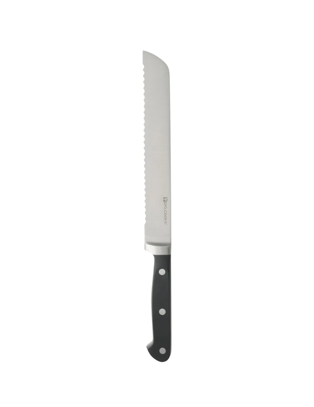 20 cm bread knife with full tang blade made of molybdenum stainless steel, ensuring high edge retention. Stainless steel bolster for added strength and comfort. Composite material handle with 3...