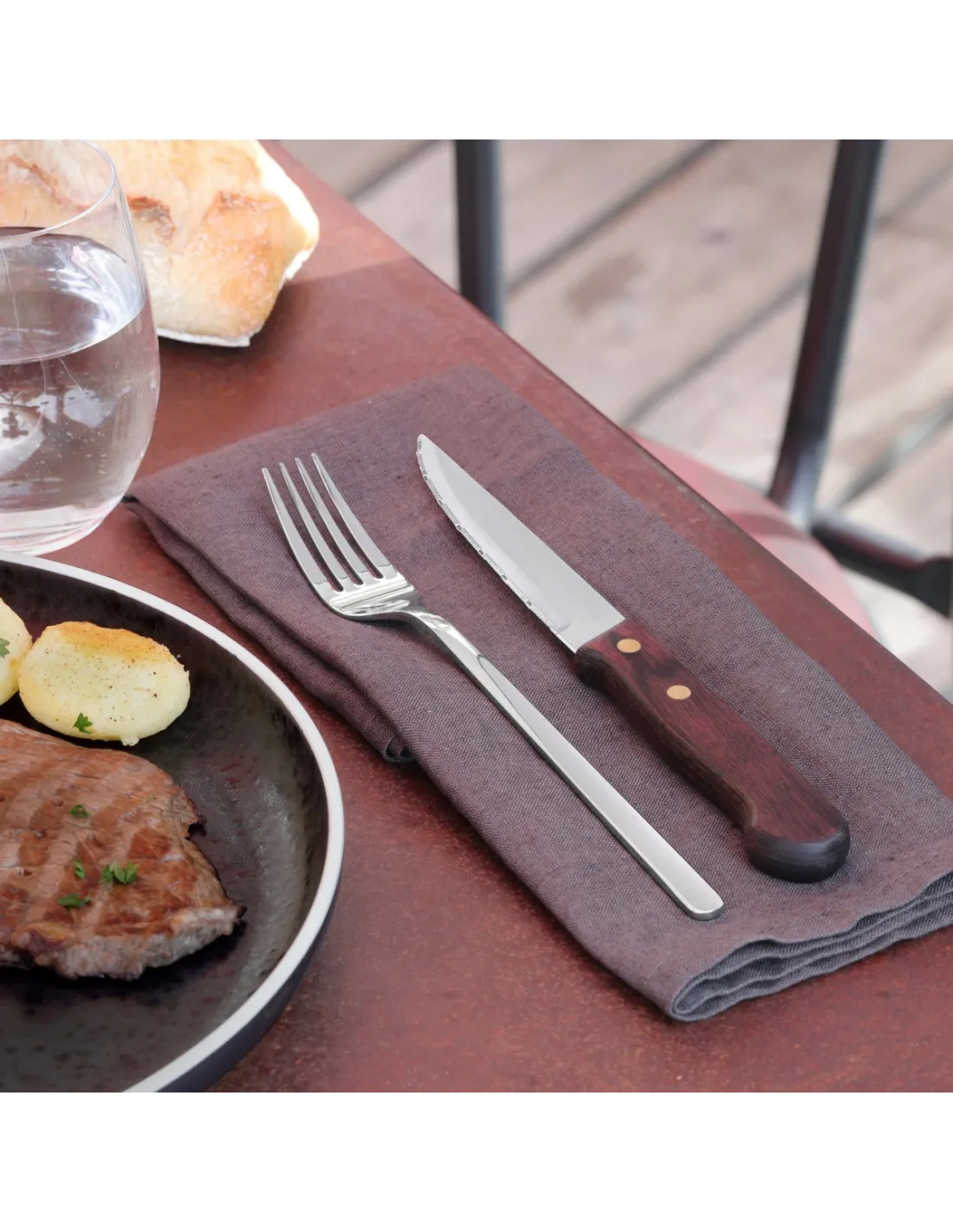 Pro.mundi offers professionals in the restaurant industry products that combine quality and timeless style. The 21.2 cm ozone steak knife from Pro.mundi stands out for its micro-serrated blade for precise cutting, an elegant and ergonomic pakka wood handle, and a corrosion-resistant stainless steel construction, combining aesthetics, durability, and ease of maintenance.
