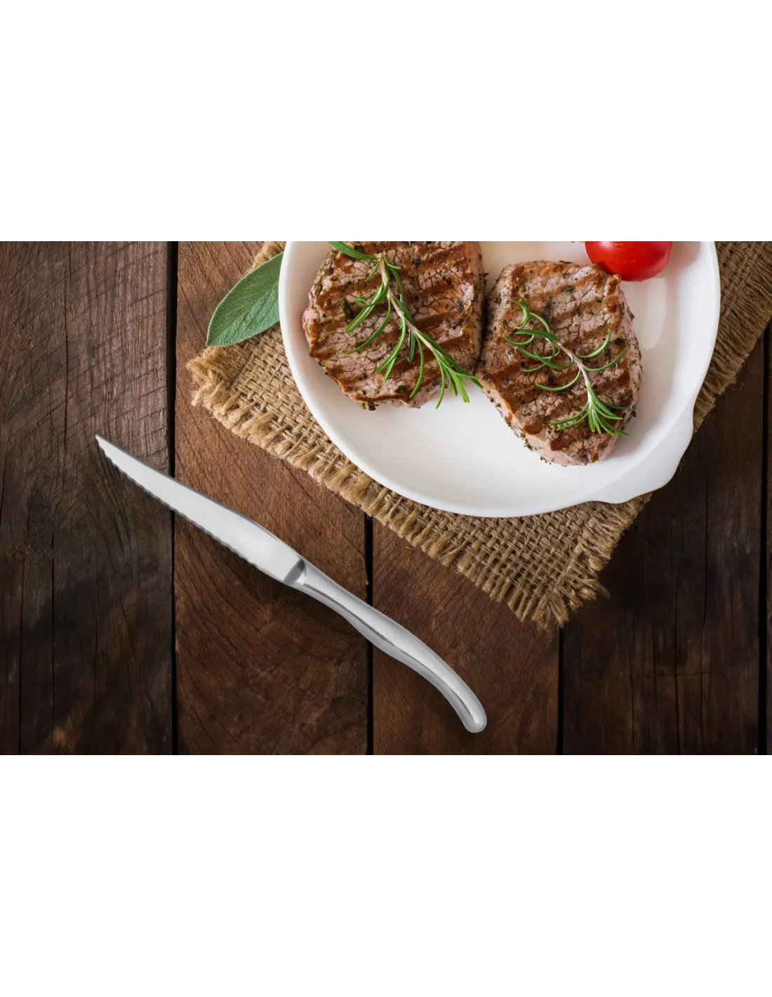 23 cm steak knife, monobloc design in stainless steel. 12.30 cm serrated blade in 13Cr stainless steel for precise cuts. Ergonomic handle that provides comfort and stability, suitable for...
