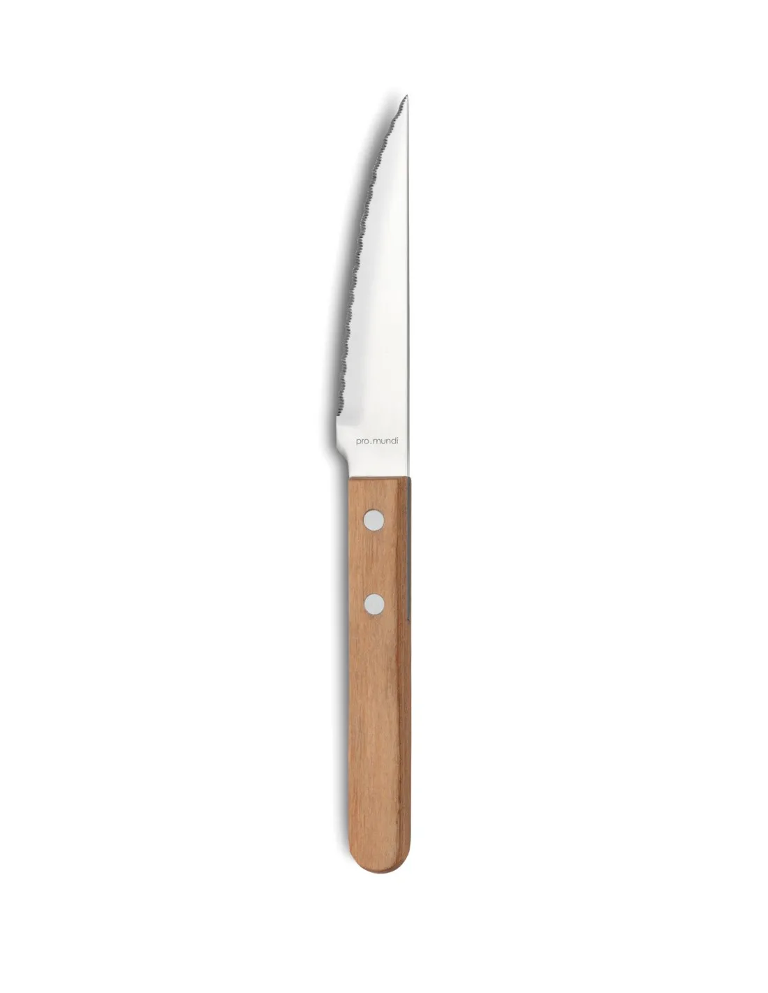 Pro.mundi offers quality and timeless products for hospitality professionals. The Elite range includes carefully designed steak knives, with light wood or black ABS handles and serrated or hammered blades. The 21 cm brown knife combines aesthetics, durability, and efficiency, making it ideal for intensive use in a professional environment.