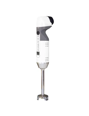 This professional Pro.equip 160 Air cordless hand blender is lightweight, fast, and robust. It features a removable stainless steel foot that is easy to clean and compliant with HACCP standards. Ergonomic and quiet, it comes with a lithium-ion battery offering 30 minutes of autonomy, charger, and bowl. It is multifunctional thanks to various optional accessories.