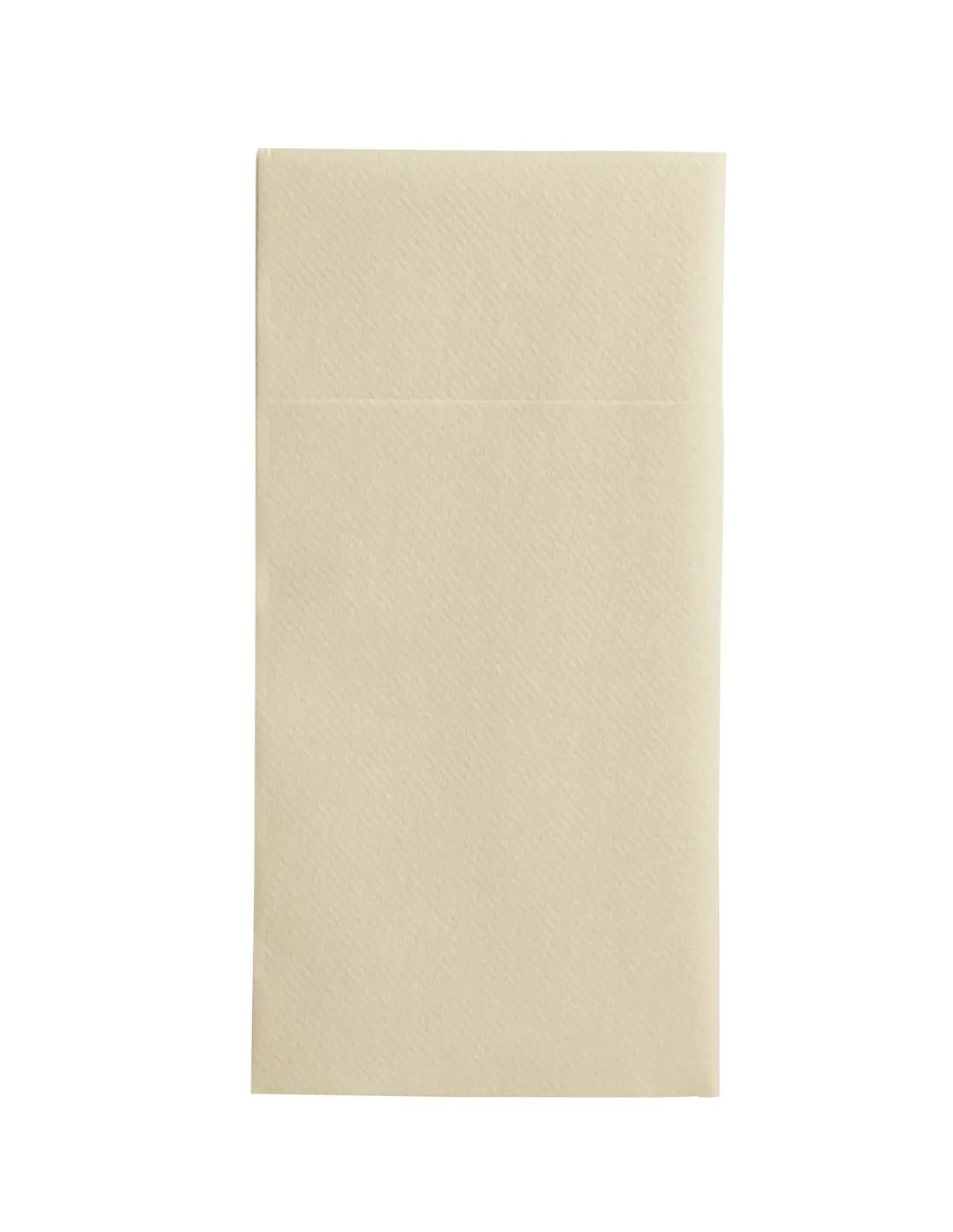 Ivory non-woven pocket napkin measuring 40x40 cm, pre-folded for cutlery. Pack of 50 units. Versatile color that adapts to various decorations.