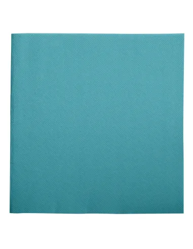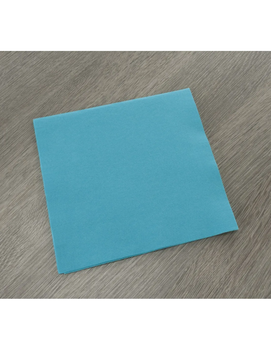 Embossed cellulose napkin in lagoon blue color, with dimensions of 38x38 cm. It offers resistance and softness, ideal for small spaces. Presented in a pack of 50 units, it matches the Lisah...
