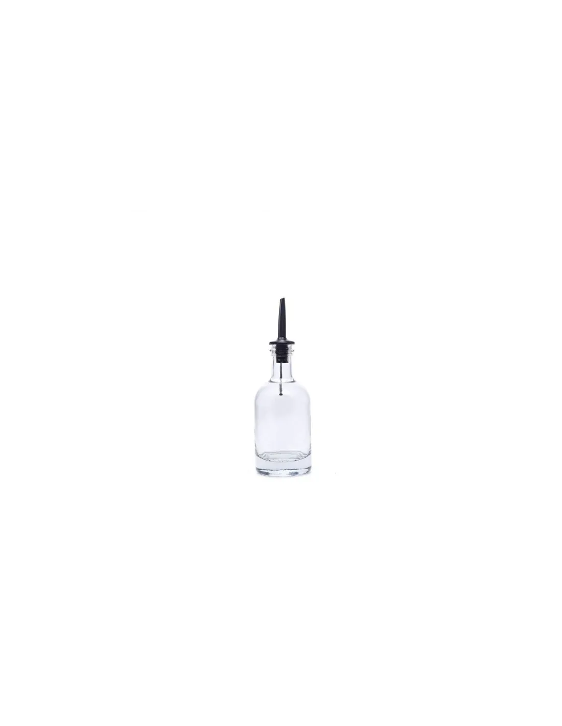 Transparent glass oil dispenser, 22 cl capacity, with dimensions of 20.7 cm in height and 6.5 cm in diameter. Its compact and stable design includes a pouring spout, making it easy to use....