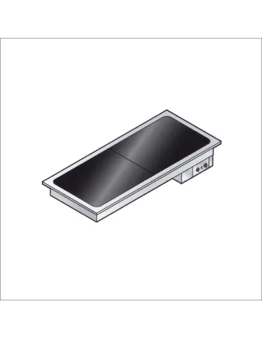 The Emainox IPC4 vitroceramic hot plate is made of AISI 304 stainless steel, with a 1.2 mm thick surface. It has a capacity for 4 GN 1/1 containers and a power of 1.6 kW. The vitroceramic cooking surface, with stainless steel edges, makes cleaning easy. The temperature is adjustable up to 120 °C using a digital thermostat. Its external dimensions are 1455x635x80 mm, while the vitroceramic glass measures 1300x510 mm. It operates on 230V 1F+N 50 Hz electrical power and weighs 47 kg.