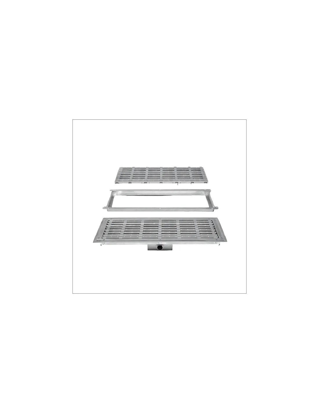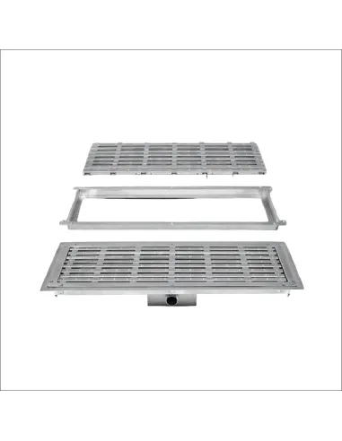 Vinyl floor channel made of PVC, designed for use in flooring applications. Dimensions of 1200×239 mm, with an adjustable horizontal outlet between 50 and 76 mm. It provides an efficient solution for liquid management in HORECA environments, ensuring optimal and safe drainage. Its PVC construction ensures durability and corrosion resistance, maintaining the integrity of the floor. Ideal for installations that require precise liquid handling, providing a discreet and functional integration into the pavement design.