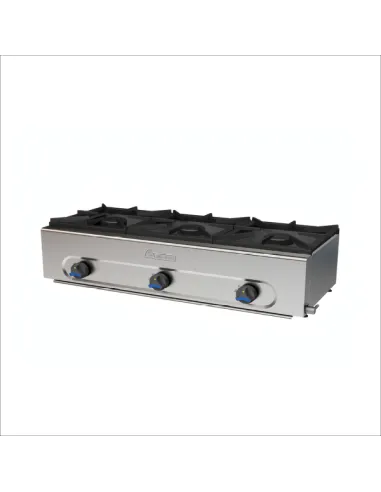 La cocina a gas Mundigas PM-970 presenta un diseño modular con tres fuegos abiertos, ofreciendo una potencia total de 10,5 kW. Sus dimensiones son 1010x420x275 mm. Fabricada con un acabado exterior en acero inoxidable, garantiza durabilidad y resistencia. Incorpora una válvula termopar de seguridad para un funcionamiento seguro. Incluye bandeja recogegrasas y parrillas esmaltadas en negro, optimizando la limpieza y el mantenimiento. Ideal para entornos profesionales que requieren eficiencia y robustez en la preparación de alimentos.