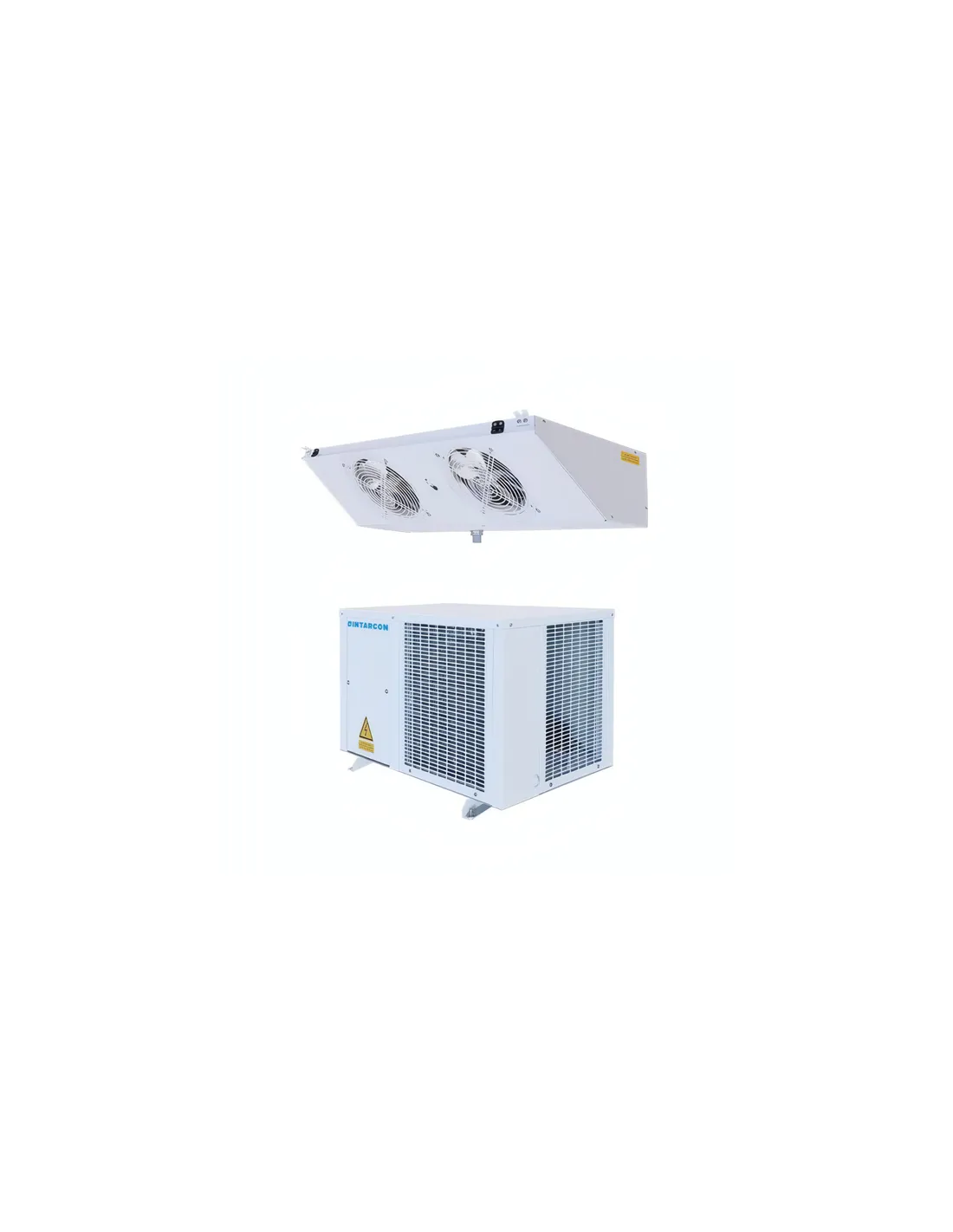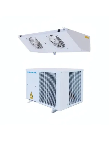 La Unidad Hermética Intarsplit BSH-NG-2075 Intarcon es un equipo semicompacto diseñado para cámaras frigoríficas de pequeño y mediano tamaño. Incluye una unidad condensadora horizontal y un evaporador de bajo perfil, doble flujo o cúbico. Cuenta con un recipiente de líquido y precarga de refrigerante R449A para hasta 10 metros de tubería. La expansión se realiza mediante válvula termostática y el desescarche por resistencia eléctrica. La bandeja de condensados es de acero inoxidable. Dimensiones: 835x435x500 mm; evaporador: 430x950x200 mm. Potencia: 5 CV. Voltaje: 230/50/1. Peso total: 90 kg. Caudal evaporador: 1050 m³/h.