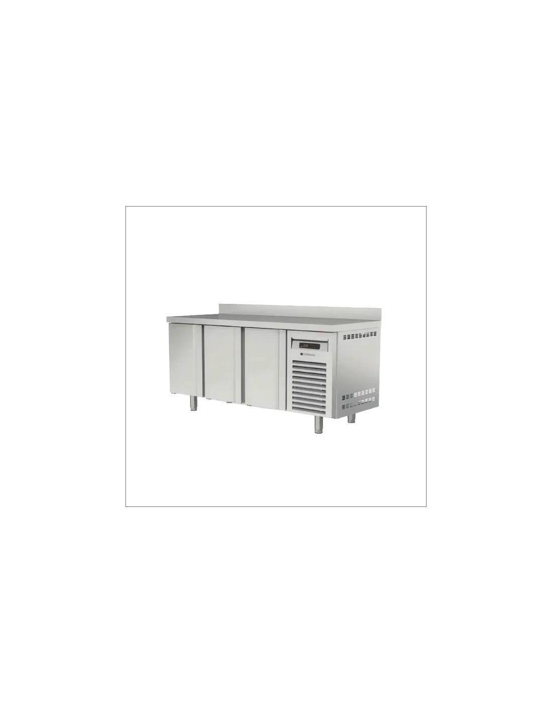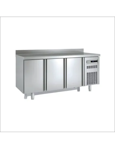 The MRG-200 cold table, without countertop and motor, offers a robust design with exterior and interior in AISI-304 stainless steel. It features a ventilated evaporator between doors and three sets of two drawers. The doors are reversible with automatic closure and magnetic gasket. The interior shelves GN 1/1 are adjustable in height and made of plastified steel. The condensing unit is ventilated and removable, with a forced draft evaporator and anti-corrosion epoxy coating. Injected polyurethane insulation, with no ODP and GWP effects. Digital temperature control and efficient energy management. Dimensions: 1795 x 700 x 850 mm. Volume: 399 L. Refrigerant R290. Cooling power: 502 W.