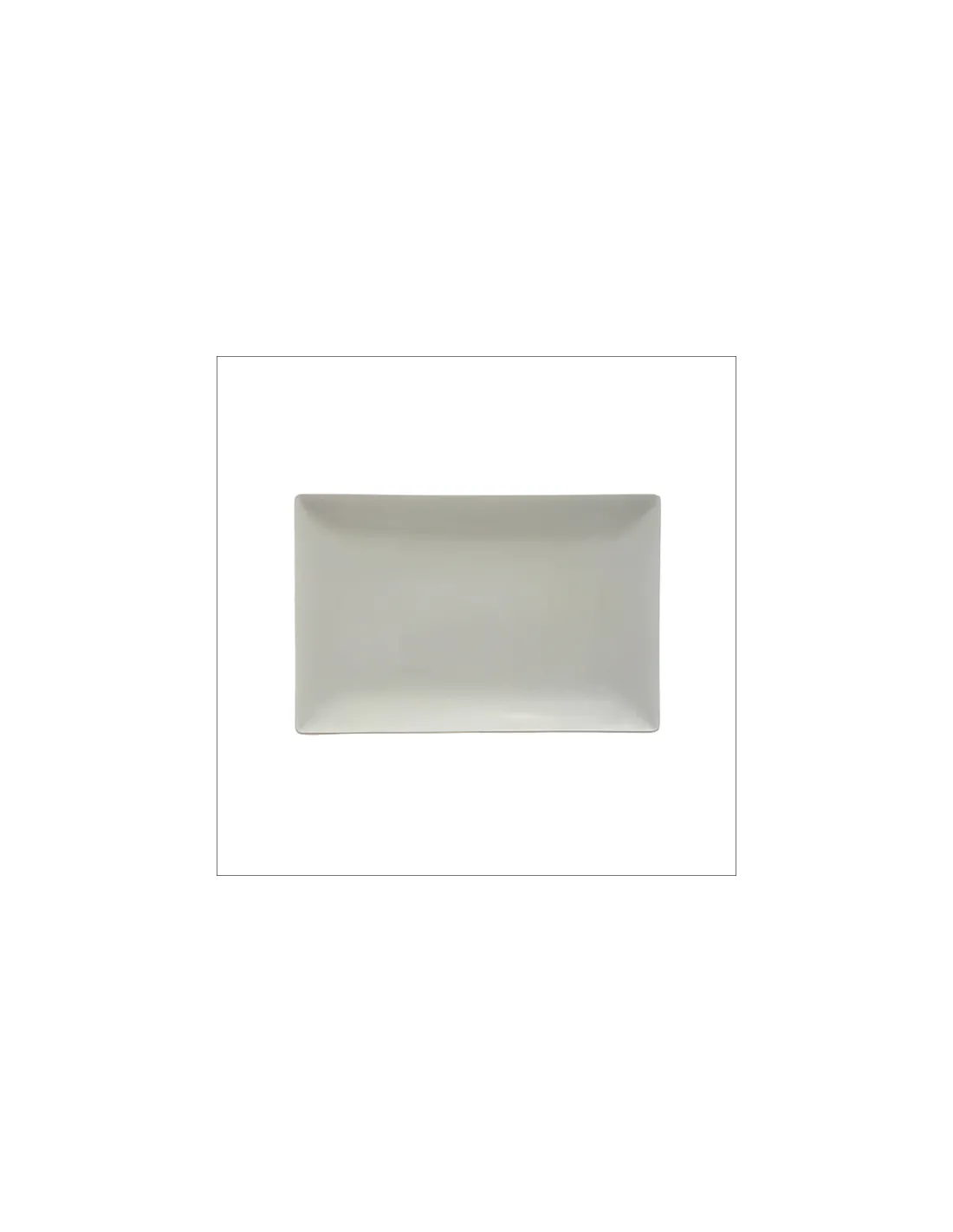 Rectangular source measuring 25×15×2 cm in cream color, made of durable material, ideal for presenting food with elegance and protection.