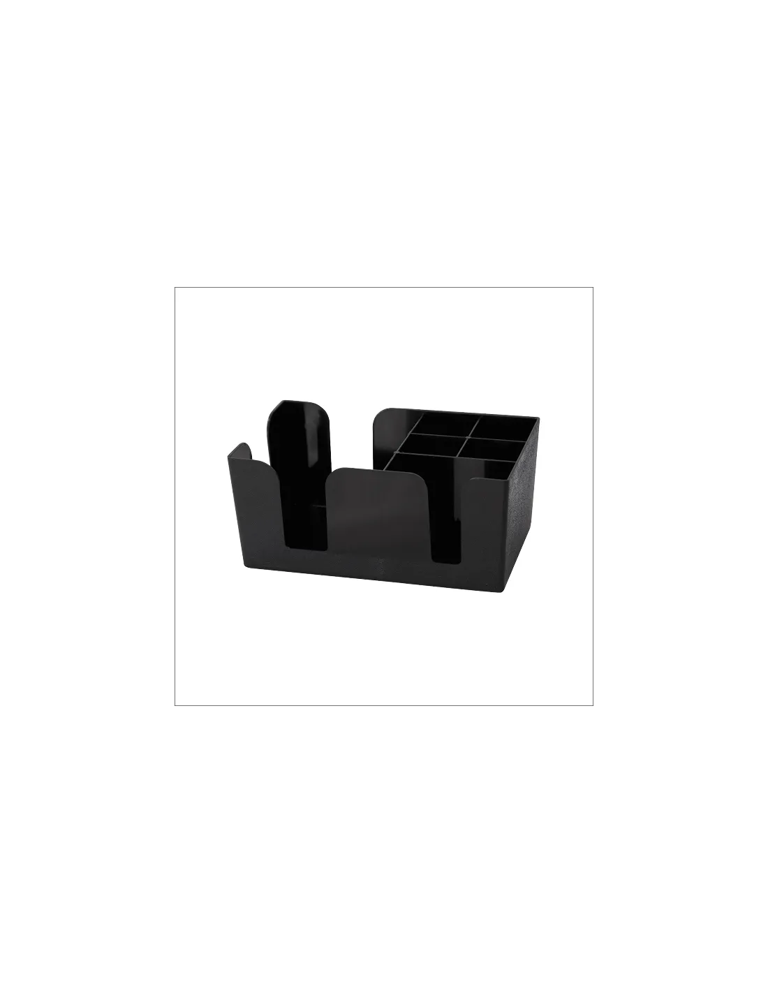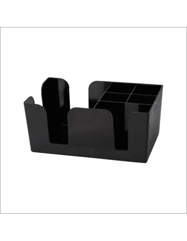 Organized napkin holder measuring 24×14×10 cm, made of durable material that ensures durability and stability in horeca environments. Its design optimizes space, allowing napkins to be kept tidy and easily accessible. Ideal for use in restaurants, cafes, and bars, it contributes to operational efficiency and enhances service presentation. Its construction provides adequate protection against daily wear, facilitating cleaning and maintenance. This accessory is essential for organization and functionality in table service.