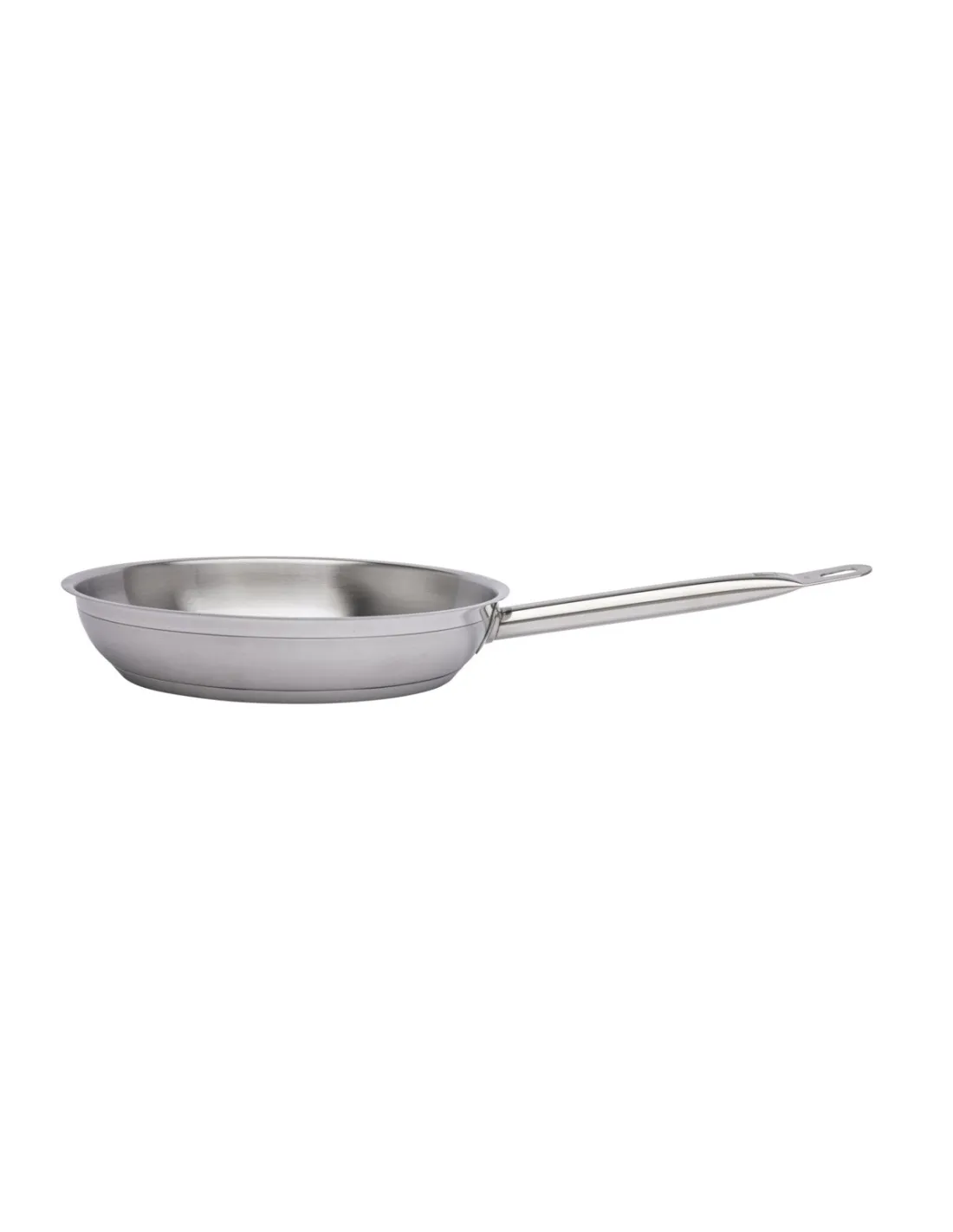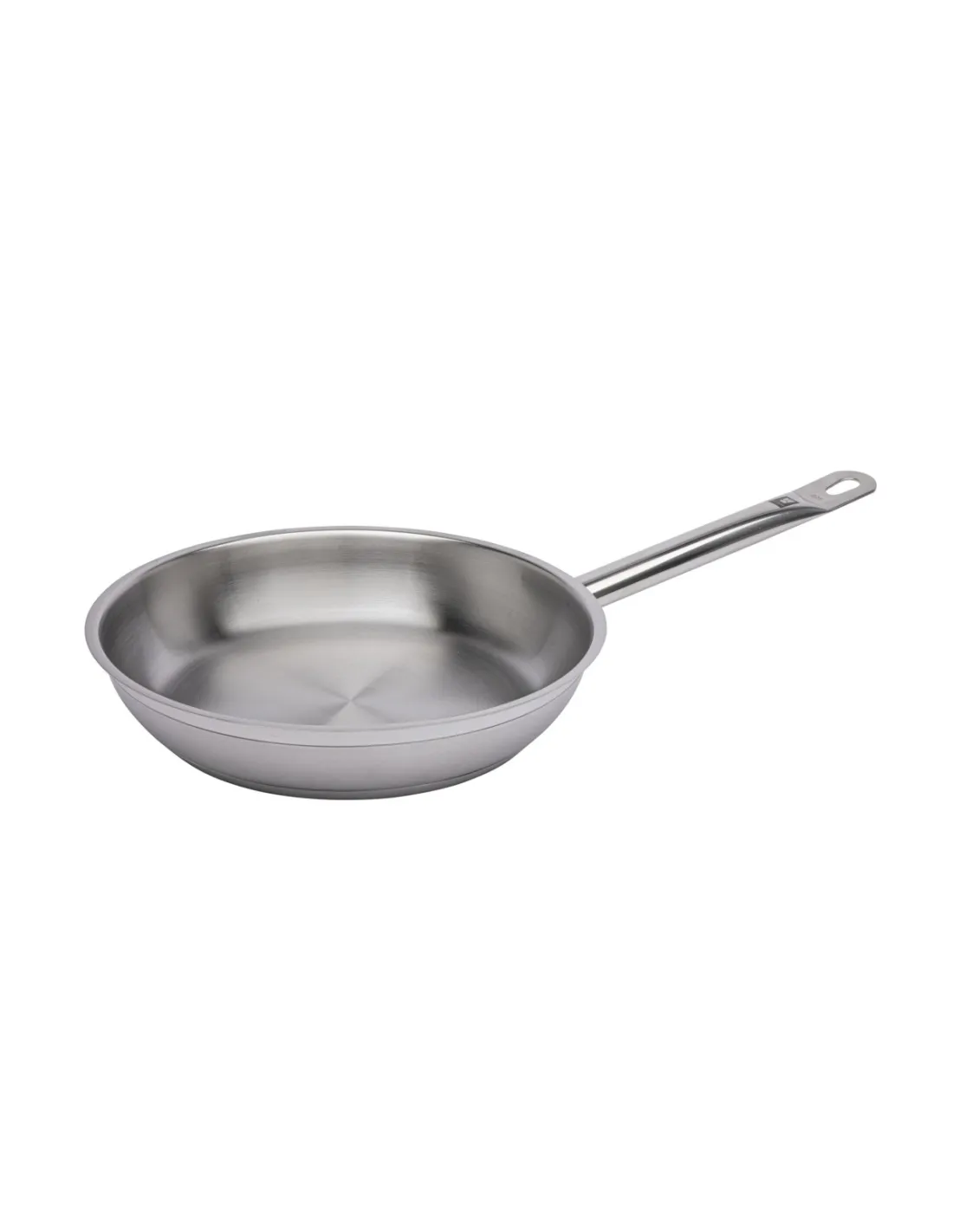 Round stainless steel frying pan with a diameter of 24 cm and a height of 5.5 cm. Resistant to corrosion and food acids, with encapsulated base (stainless steel-aluminum-stainless steel) for...