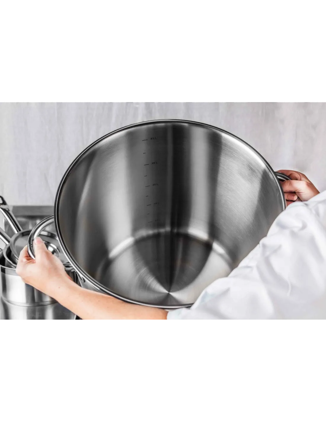 Made of stainless steel, with excellent resistance to corrosion and food acids. Encapsulated base (stainless steel - aluminum - stainless steel) that allows optimal heat diffusion. Satin-polished interior and exterior finish, with a polished mirror rim. The interior of each unit is calibrated for greater precision. Pouring rim. Athermal stainless steel tube handles and welded stainless steel fastenings, very resistant. Stackable lids that are easy to store. Easy maintenance thanks to the rounded angles. Compliant with standards.