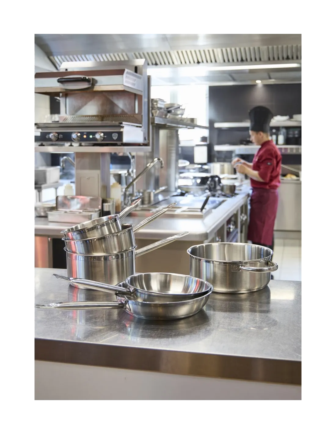 In stainless steel, this pot offers excellent resistance to corrosion and food acids. Its encapsulated base ensures optimal heat distribution. With a polished satin finish on the interior and exterior, it has a polished mirror edge. The heat-resistant handles and stackable lids make it easy to use and store. Easy maintenance thanks to the rounded angles. Complies with standard NF EN12983-1.