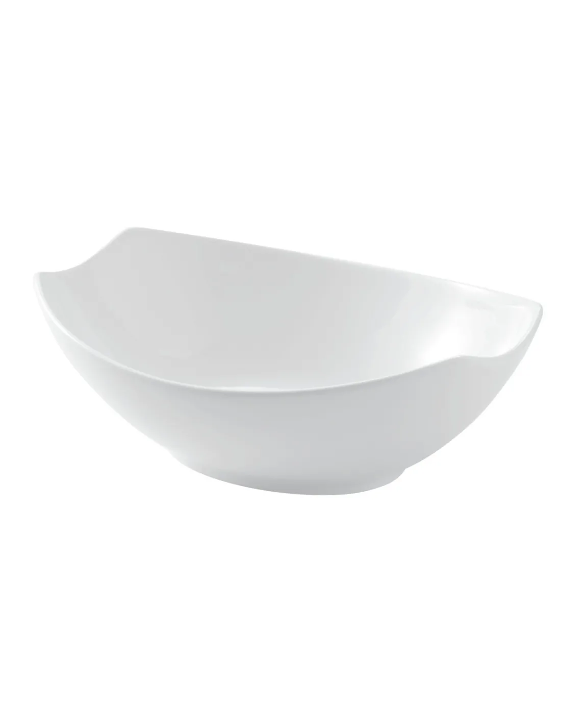 Oval white porcelain salad bowl, 26 cm in size, designed for hospitality professionals. Stackable, durable, and resistant to impacts and scratches. Its oval shape and white finish provide an...