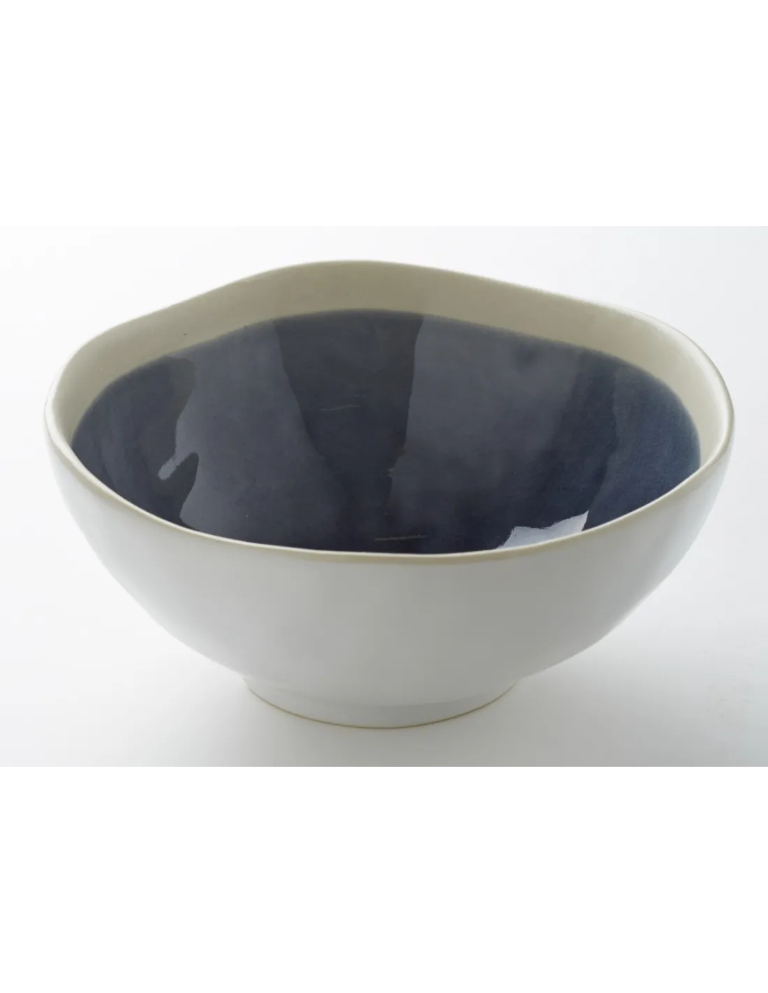 The round blue glazed stoneware salad bowl, with a diameter of 17.5 cm, features a handmade design with rough edges and crackled glaze. Made of sturdy glazed stoneware, it offers resistance to...