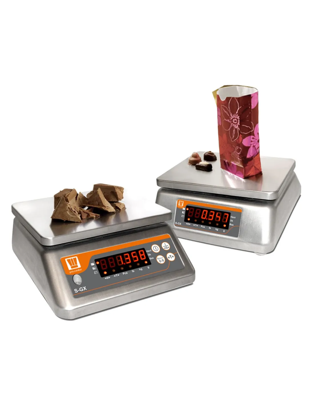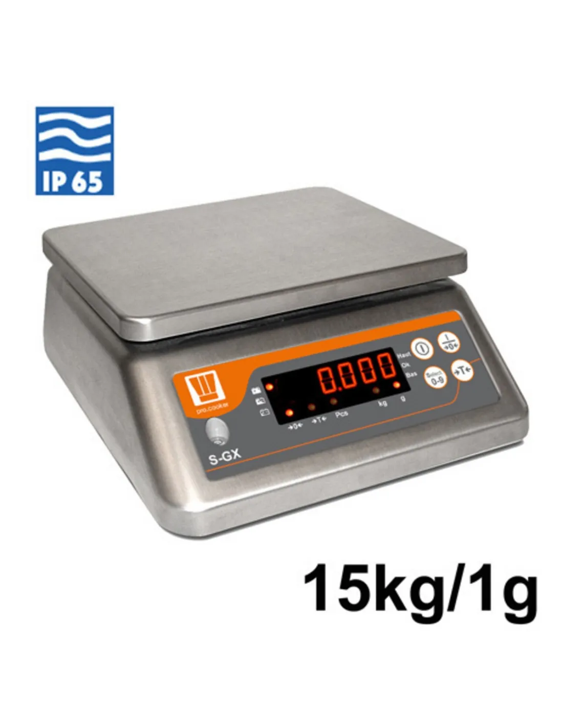 Laboratory balance +/-1.0000 CELSIUS 230v Pro.cooker for precise results. Detachable stainless steel plate 225x186mm. All stainless steel IP65 protection. For use between +5° to +40°C. Dual front/back red LCD display of 18mm. Integrated power supply, integrated battery, 230v/6VA - 500mA. Battery life: 30 to 45 hours depending on charging time, supplied with power cable. Adjustable foot for leveling. Functions: weighing, tare, zero key.