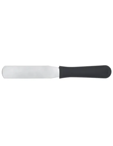 Rounded tip for spreading, smoothing, and manipulating pastries. 23 cm stainless steel blade.