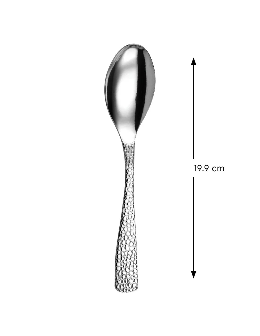Stainless steel 18/0 table spoon, with a length of 19.9 cm. Its hammered handle design offers durability and corrosion resistance, making maintenance easier. Suitable for daily use and events, it...