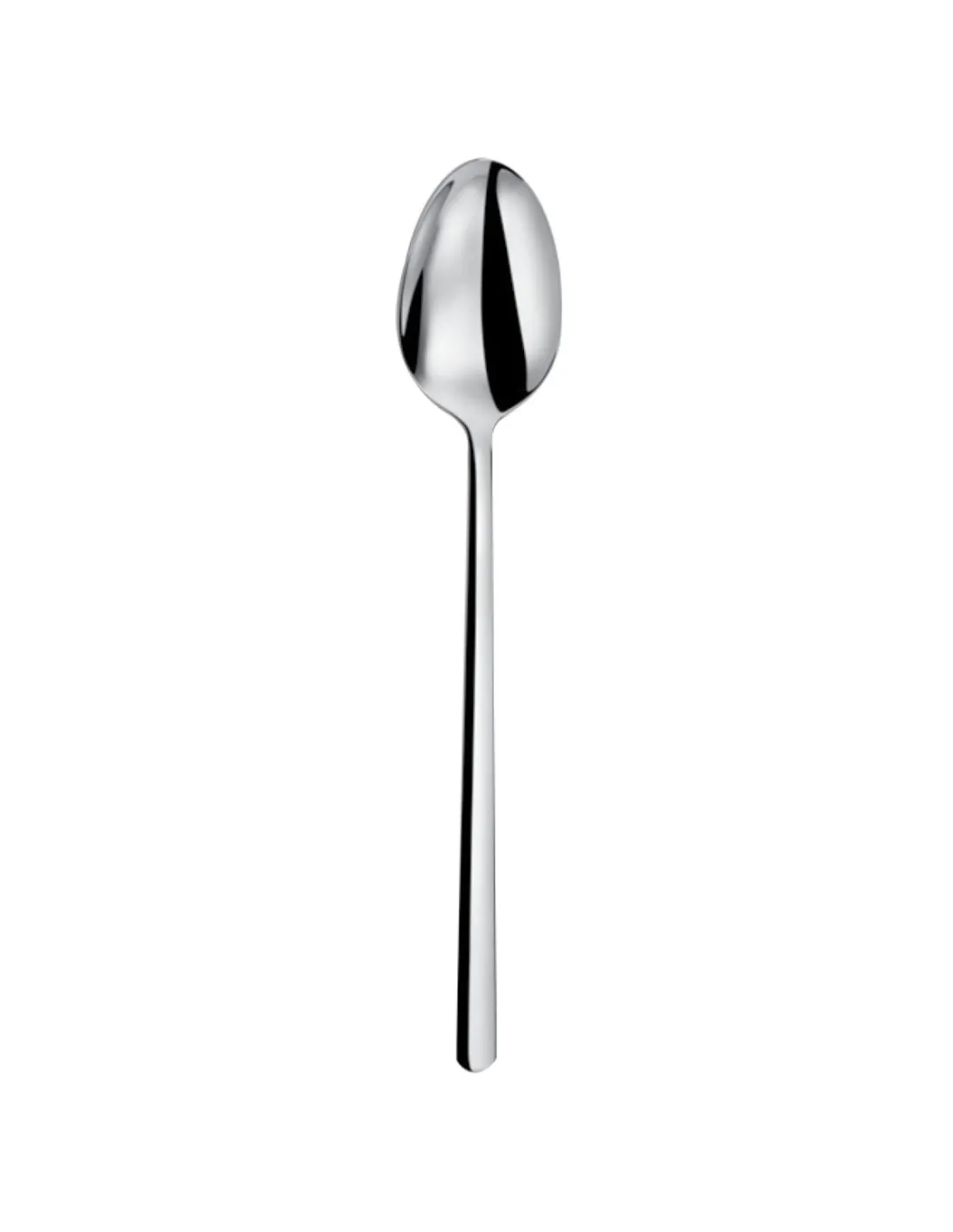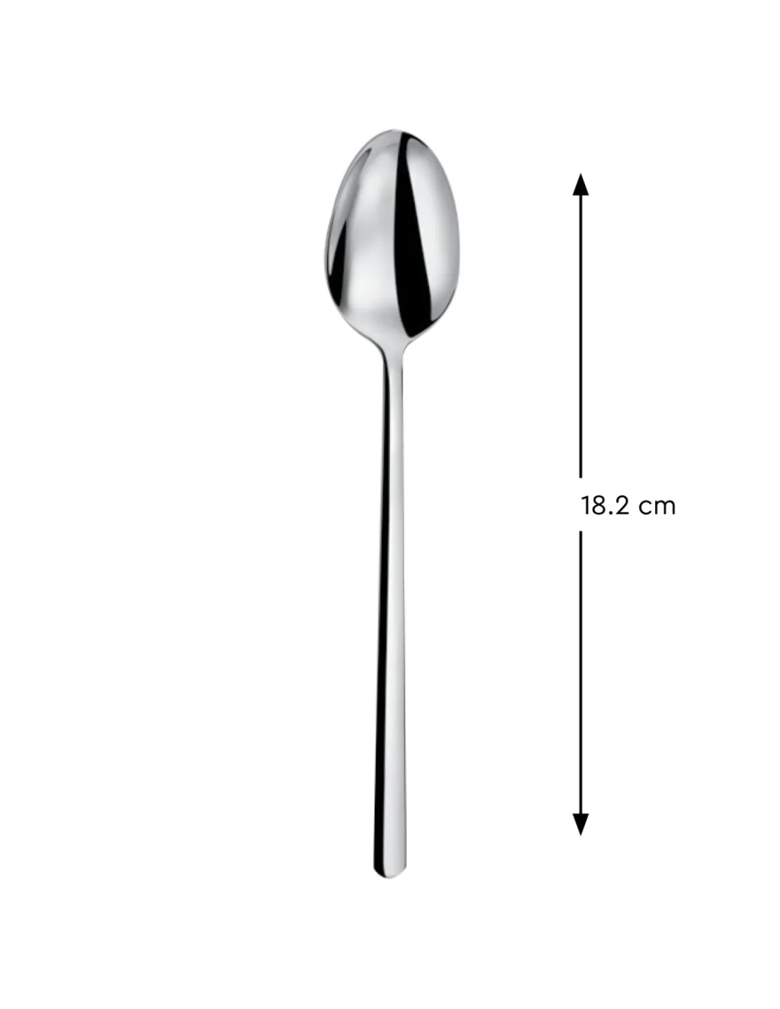 Pro.mundi offers a dessert spoon made of 18/10 stainless steel, measuring 18.2 cm, that combines elegance and functionality. Its shiny finish and minimalist design adapt to all table styles. Corrosion-resistant and durable, it is ideal for frequent professional use, easy to maintain, and comfortable to use.