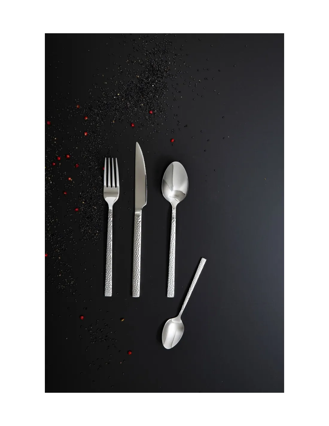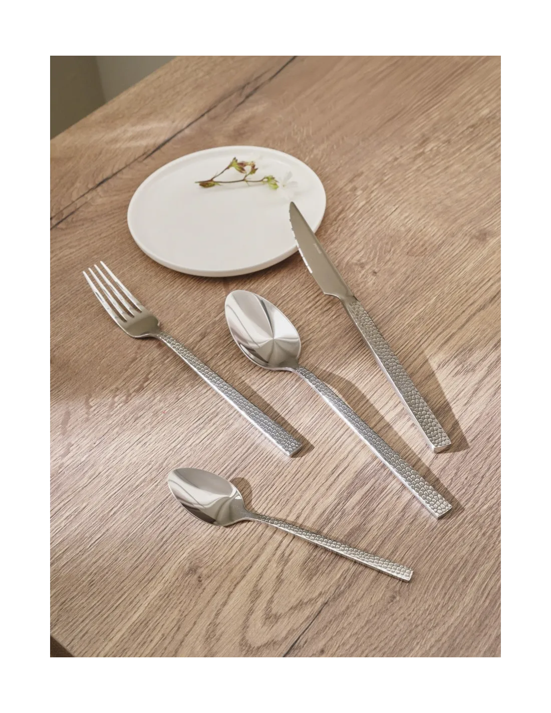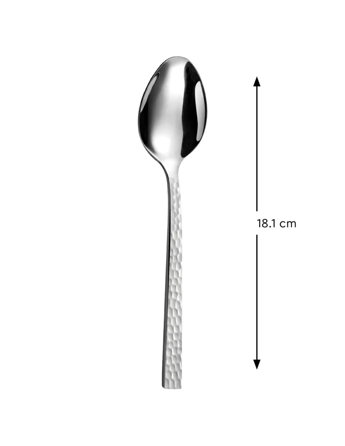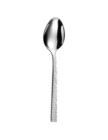 18/0 stainless steel dessert spoon, 18.1 cm long, model Alma. Made of 18/0 stainless steel, it features a hammered finish that provides sturdiness and corrosion resistance. Its ergonomic and...