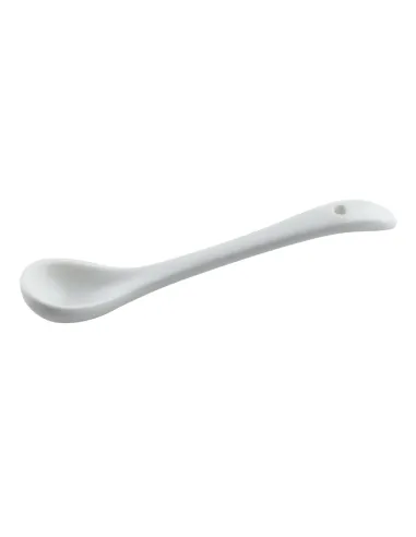 White porcelain mustard spoon, 10 cm long, designed for buffets and restaurants. Resistant to thermal variations, durable, and easy to clean, it combines functionality and aesthetics for intensive...