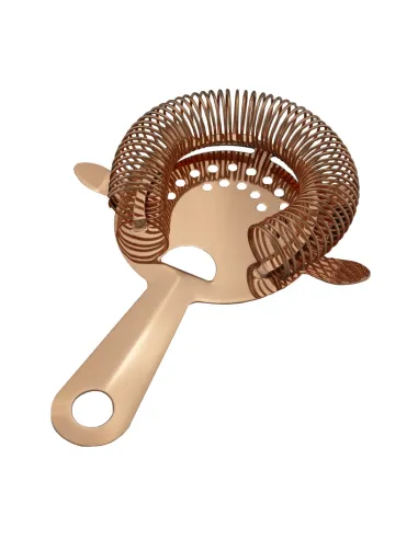 Strainer for shaker, 9 cm in diameter and 15 cm in height, made of stainless steel with a copper finish and featuring a 4-legged design.