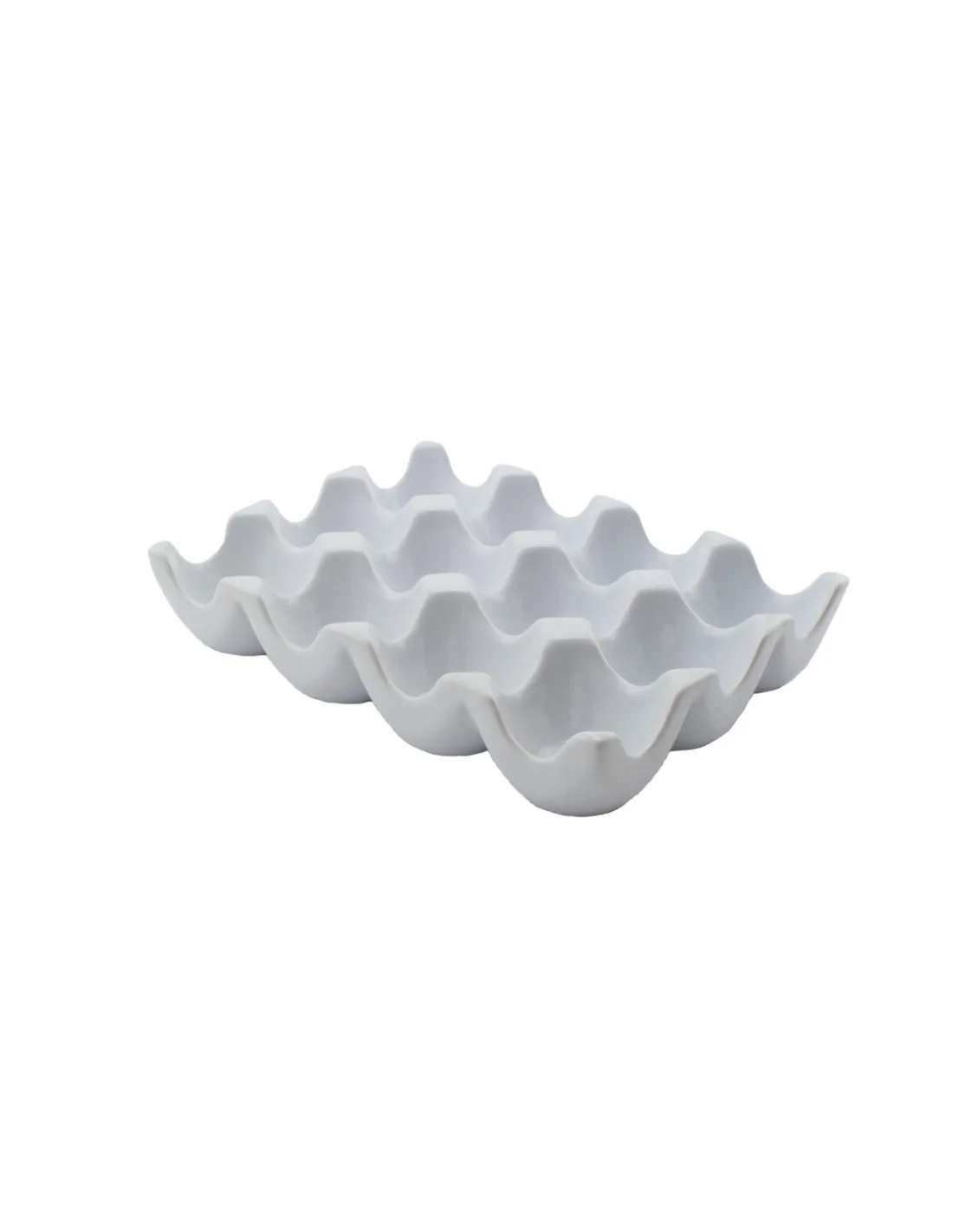 Rectangular white porcelain egg holder, with a capacity for 12 eggs, designed for buffet presentations. Measurements: 19 cm.