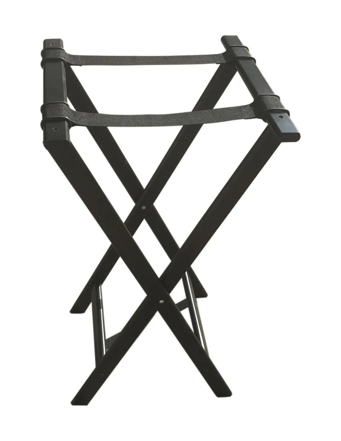 Support for dark wood trays, measuring 45.5x43x82 cm. It has reinforcement between uprights for greater strength and non-slip support. The tray rests completely on the upper frame and securing...