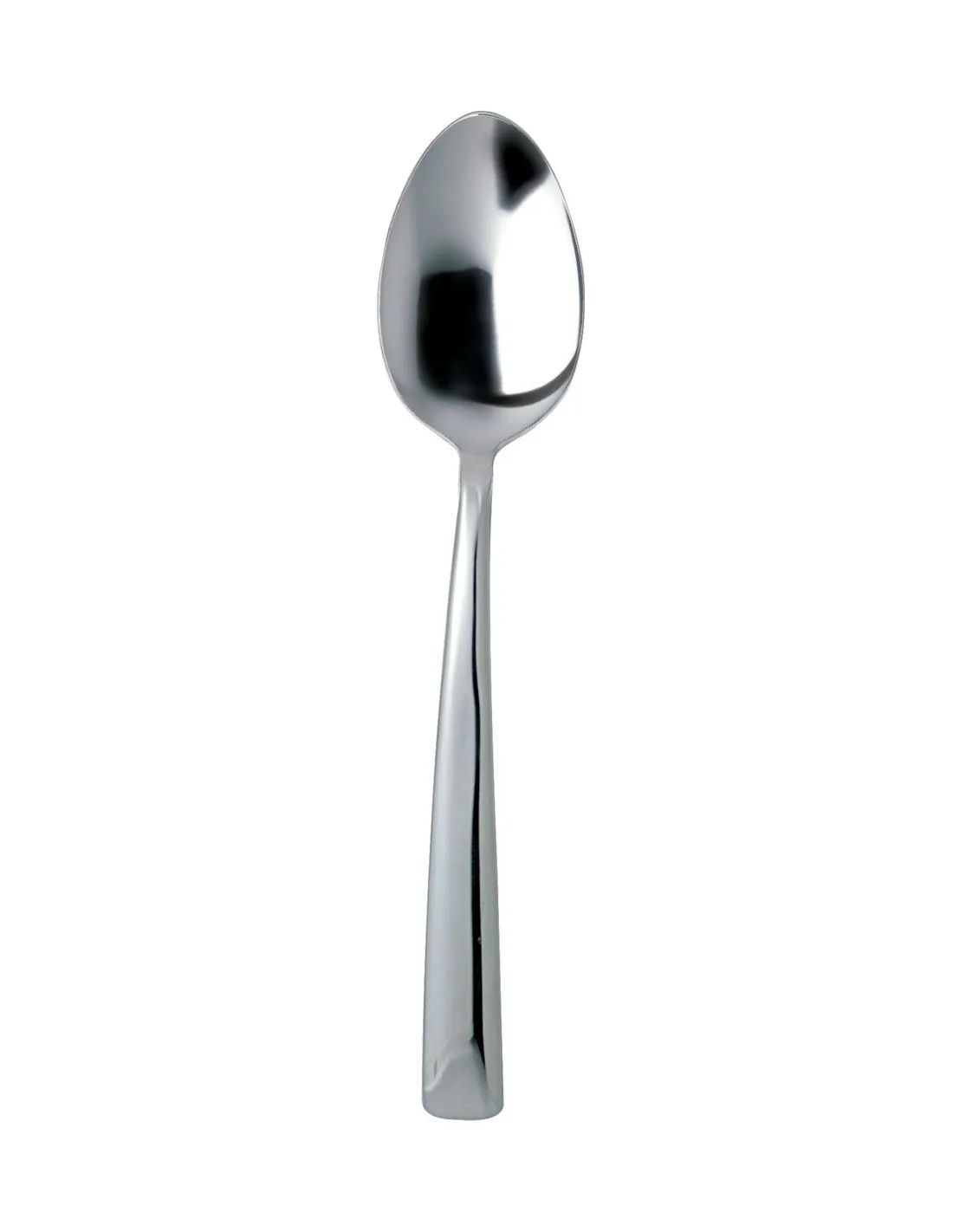 Stainless steel 18/0 moka spoon, measuring 9.5 cm, designed for intensive use in the hospitality industry. Corrosion-resistant, easy to clean, and with a beveled handle that provides a good grip....