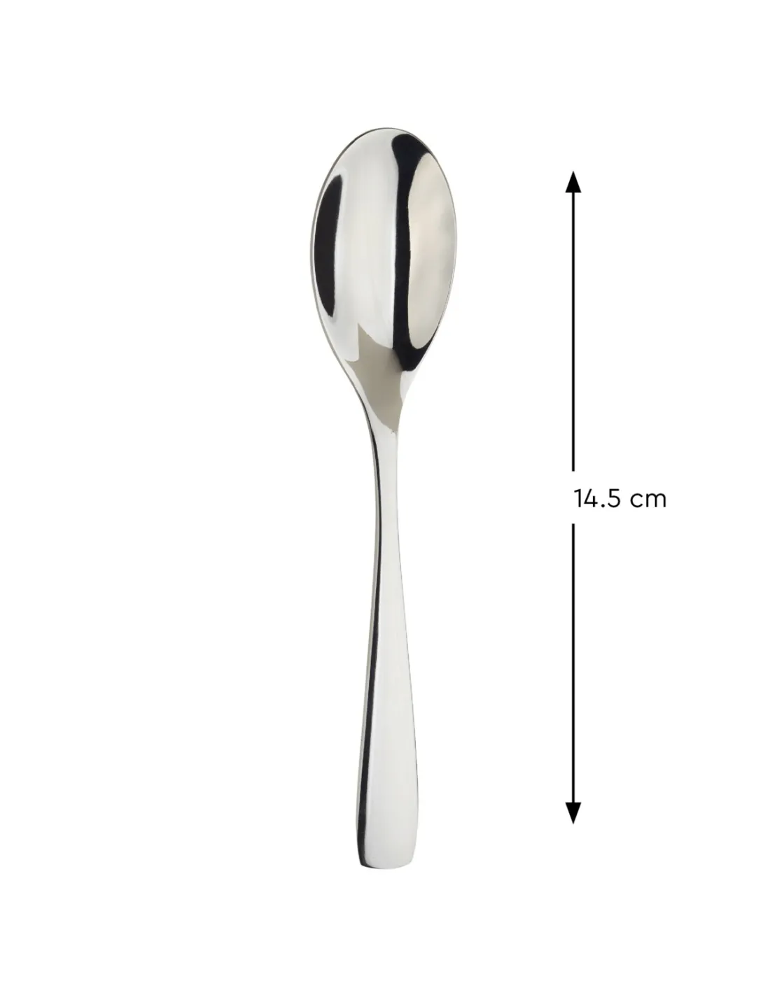 Stainless steel 18/0 coffee spoon, 14.5 cm, with a minimalist design. Durable and comfortable, suitable for intensive use in catering. Easy to maintain, ensuring durability and hygiene.