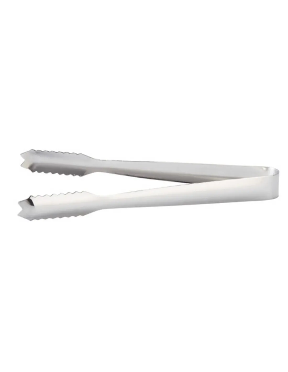 Stainless steel ice tongs, with a length of 18 cm, designed for efficient and durable handling when manipulating ice.