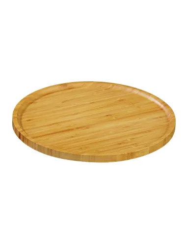 Round bamboo tray with a diameter of 31.5 cm and a height of 1.5 cm, designed for professional use in restaurants and catering. Made of natural bamboo with food-safe varnish, it is suitable for...